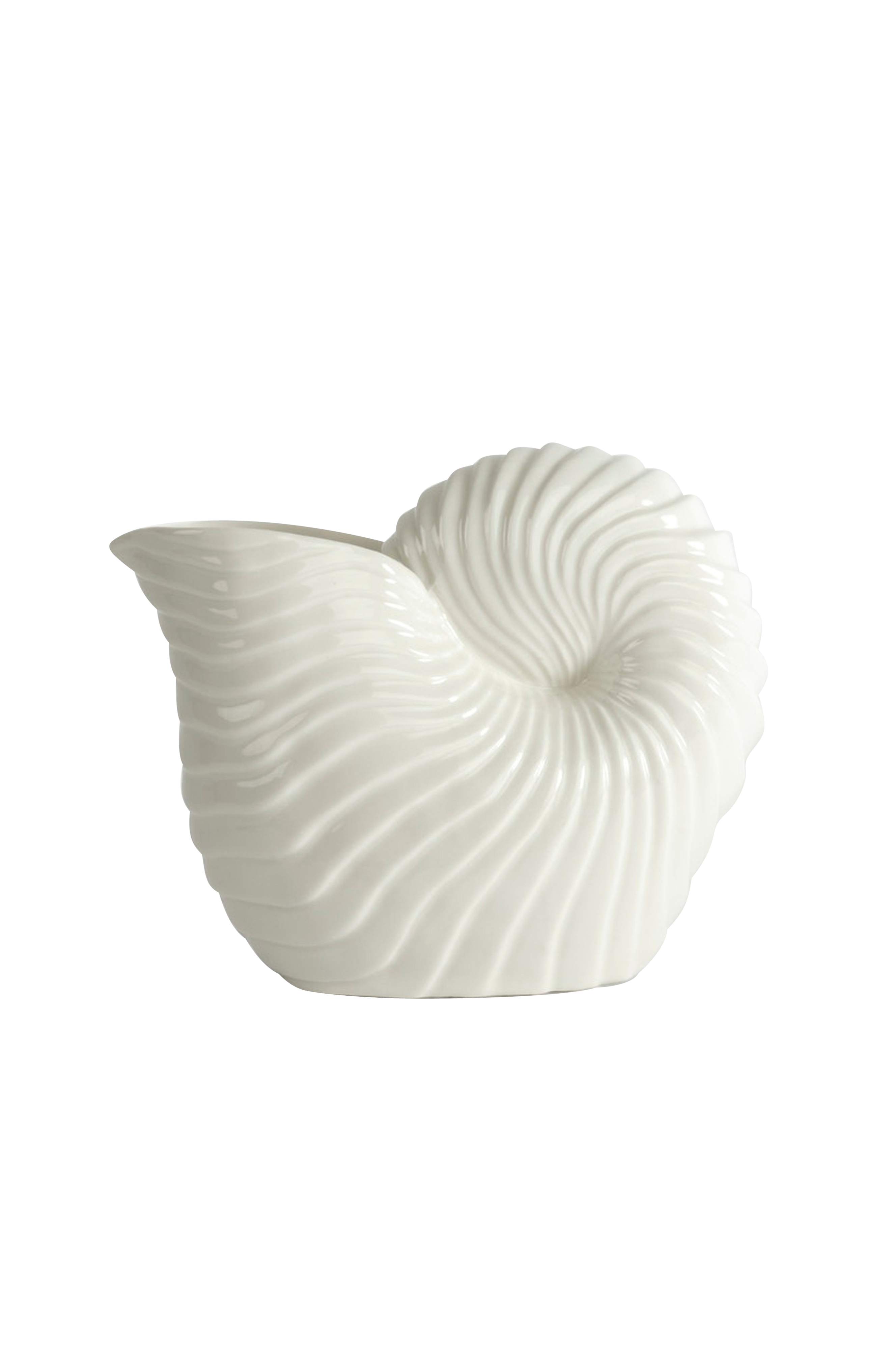 Snäckornas form har mött fantasin och blivit något nytt och spännande. Kanna Shelly, tillverkad av porslin, är en chunky karaff med unik form och gestaltning. Den strålar extra mycket tack vare sin glossy finish. Fungerar givetvis lika bra som vas. Bara du sätter gränserna för vad en karaff kan bli. Rymmer 1,5 l. Tål diskmaskin.