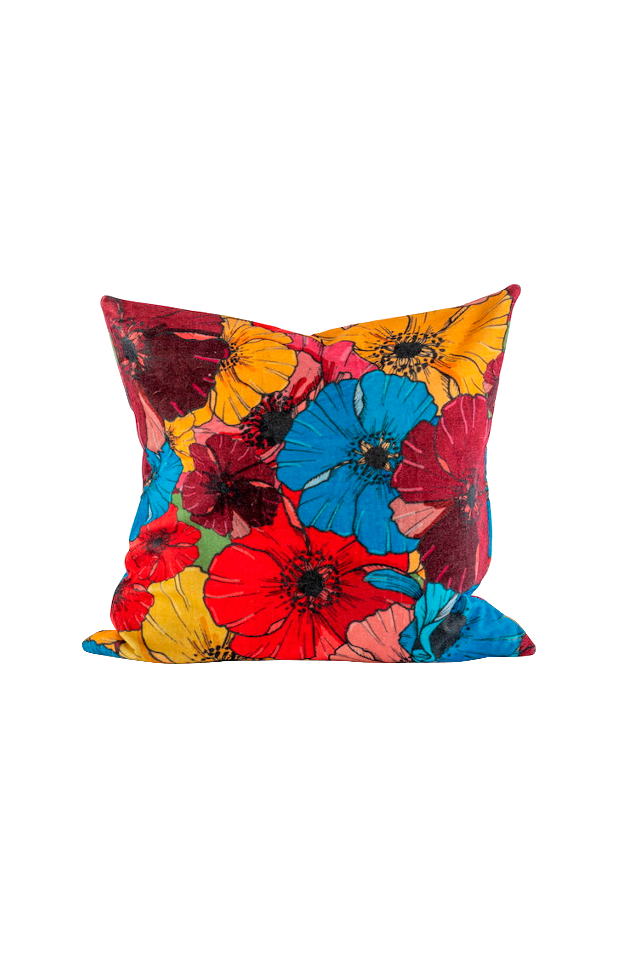Med kudde Leya intar blommorna vardagsrummet. Stora och färgstarka blommor - riktiga ”eye catchers” som skapar energi i rummet. Vi älskar när blomkudden får ta plats med andra färger och mönster. Ju mer du vågar mixa desto mer lekfullt och kaxigt blir det. Vi vill ha det så där perfekt imperfekt och stökigt. Kudde Leya är en skön och fluffig kudde i tvättad finish och med en baksida i lent sammetstyg. Kudden är tillverkad i certifierad ekologisk bomull. Levereras med innerkudde. 40 grader maskintvätt.