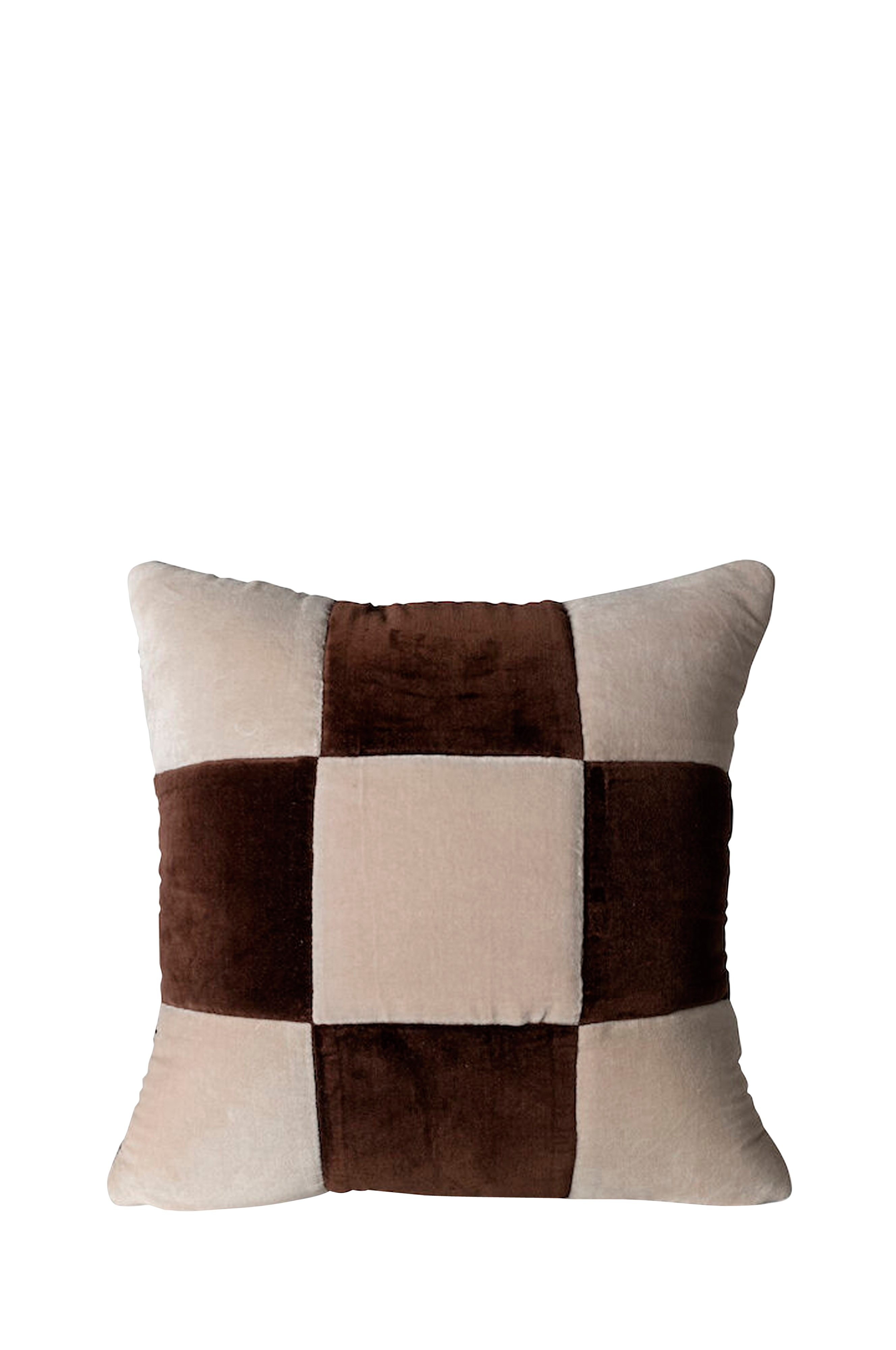 Mjuka material och mjuka kullar möter hårda linjer från den klassiska schackrutan i denna fantastiska kudde. Här har vi brun och beige sammet i en perfekt mix. En kudde som kommer bli pricken över i:et tillsammans med andra kuddar men som också uttrycker sig lika starkt ensam. Storlek 45x45 cm. Fyllningen är inkluderad.