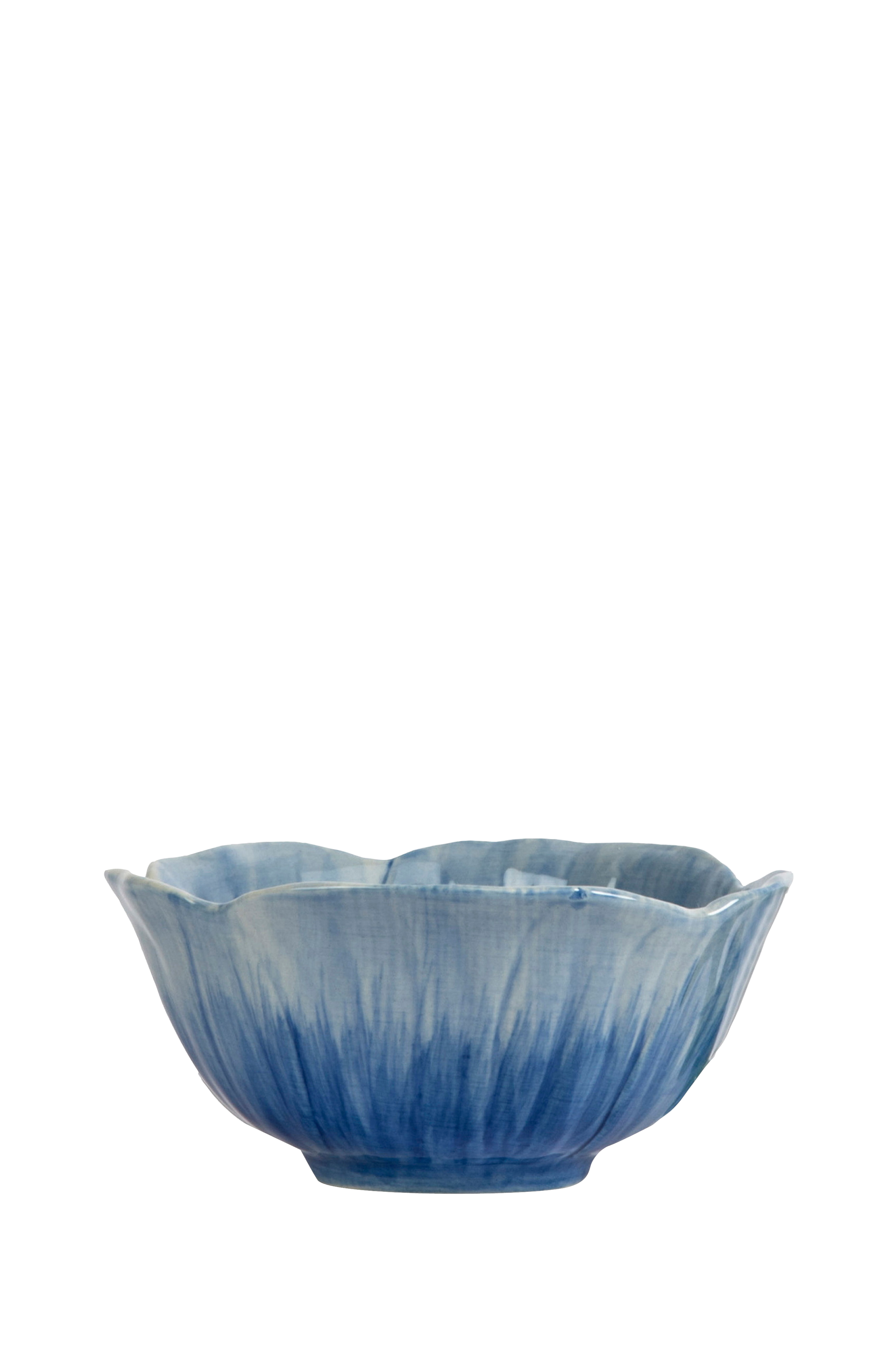 Med Poppy tar vi sommaren inomhus på ett helt nytt sätt. Skålen Poppy är inspirerad av den vackra blomman Poppy och kombinerar det klassiska med det lekfulla. En livlig, glad, vacker och helt underbar skål i stengods som gör alla tillfällen extra blommiga och vackra. Skålen är i en mjuk blå nyans som får oss att tänka på blommande fält och havet. Poppy är designad av Byon Studio. Handmålad, färg- och strukturskillnader kan förekomma. Tål maskindisk. ø11x5cm