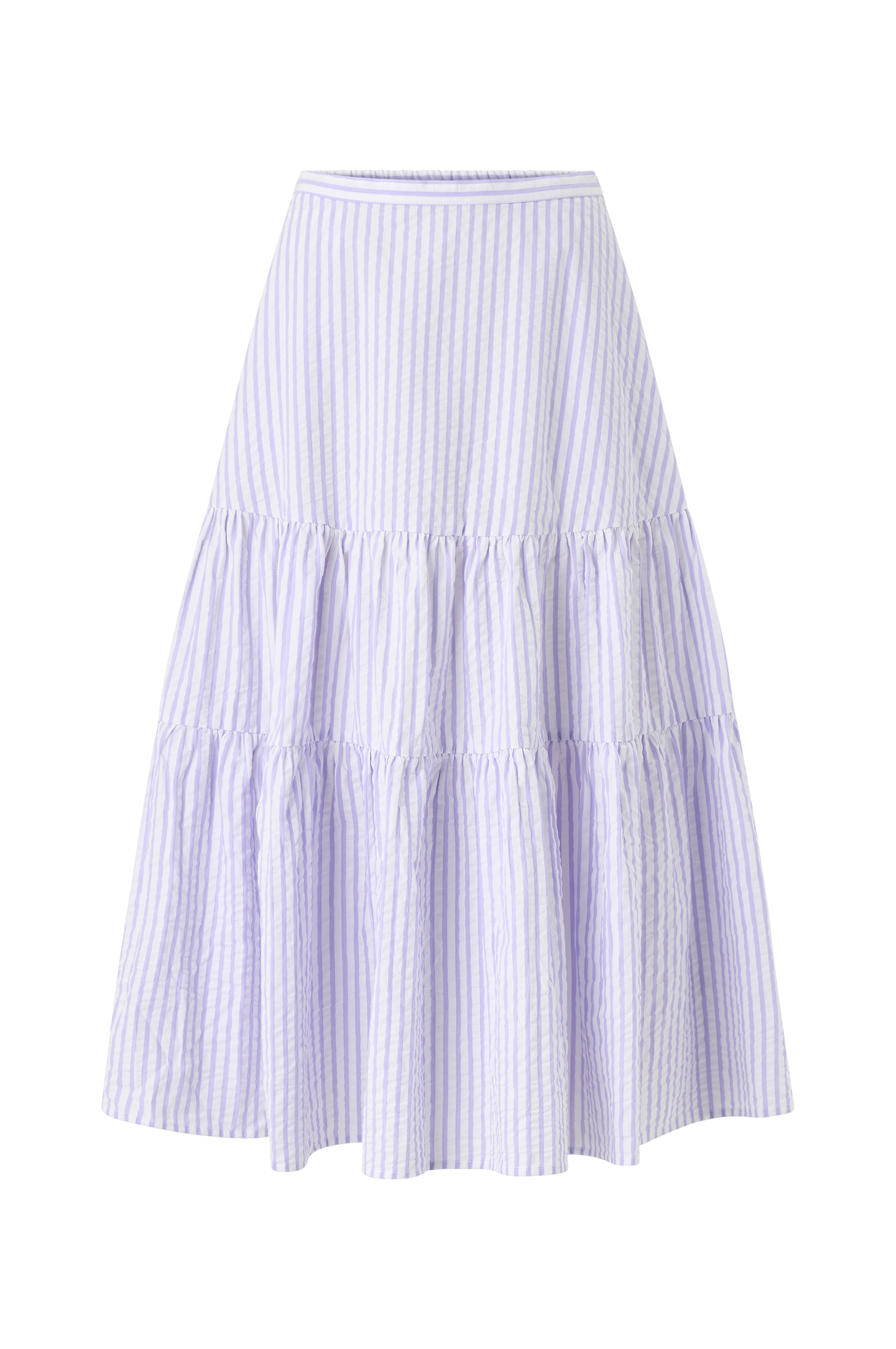 • Midikjol i seersucker med volanger• Vid, a-linjeskuren modell• Resår bak i midjan med slät linning fram• Dold dragkedja i sidan• Sidfickor• Längd: 83 cm i storlek S