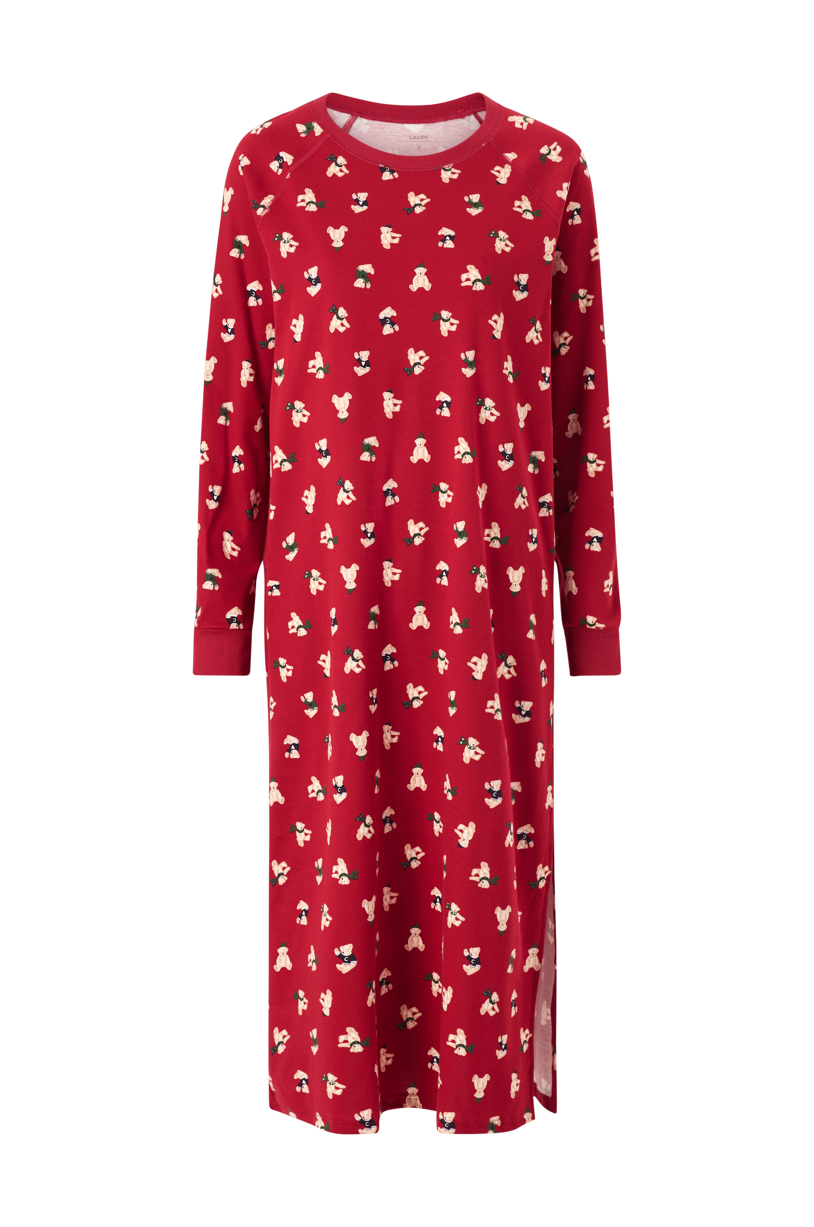 • Långt nattlinne i tjockare bomullstyg• Ribbad mudd i ärmsluten• Slitsar i sidorna