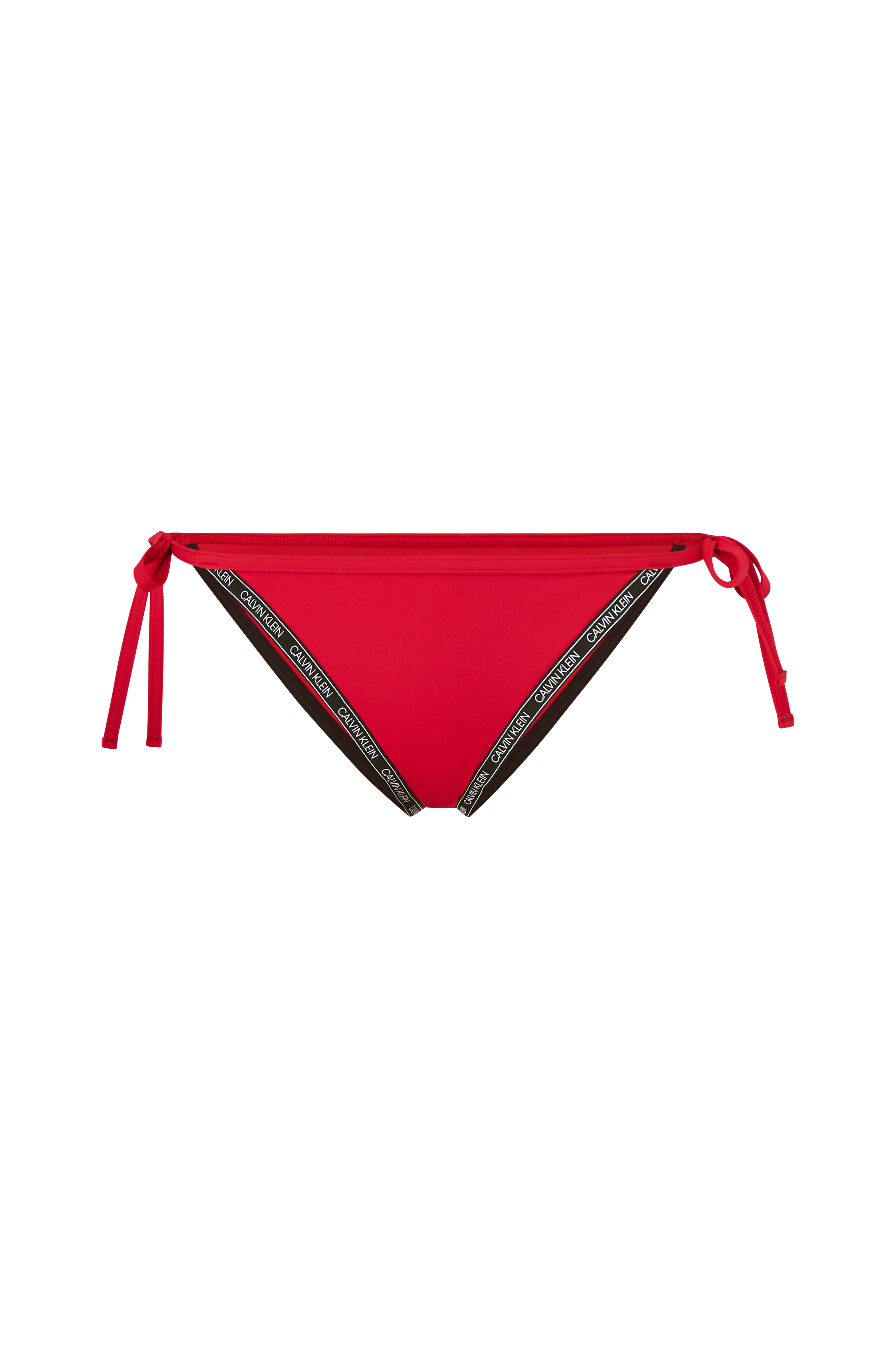 Bikinitrosor med knytband i sidorna. Kantband med logo längs benöppningarna. Smal resår i midjan. Helfodrad.