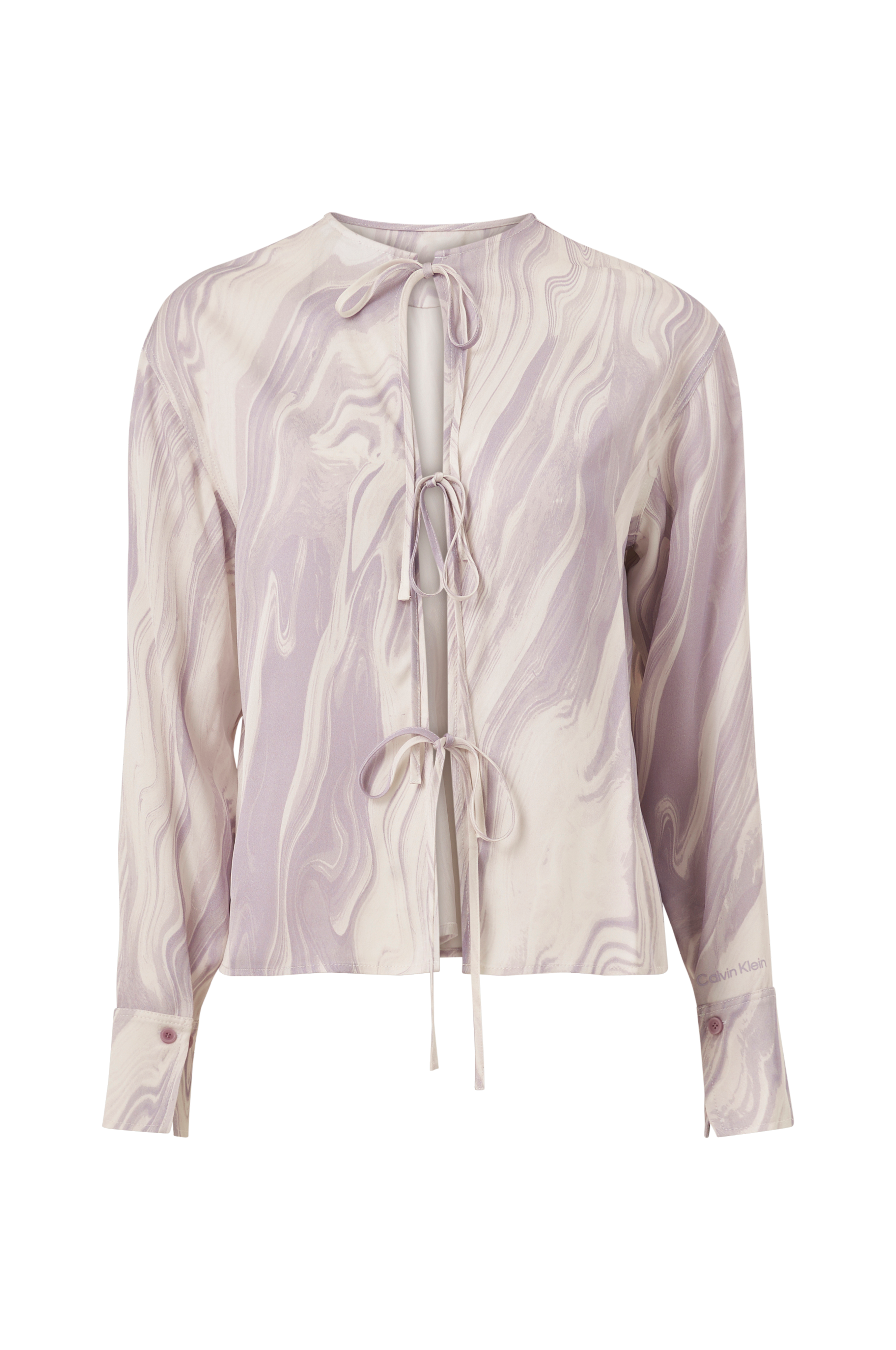 • Öppning med knytband i ryggen• Långa ärmar med manschett• Nerhasade axlar