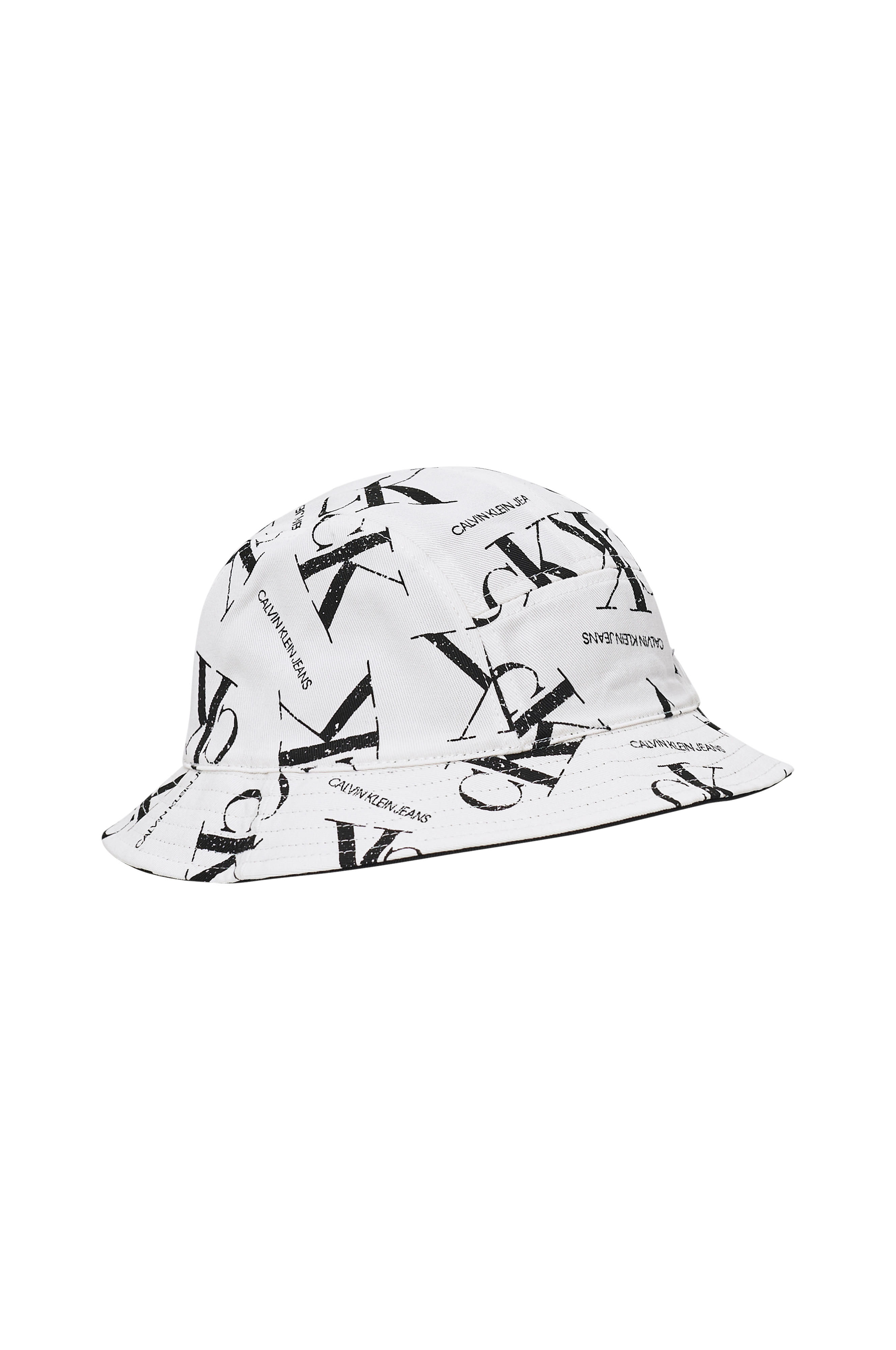 Vändbar hatt i klassisk bucketmodell. Den ena sidan är enfärgad med ett vävt logoband runt om, den andra sidan har ett tryckt mönster.