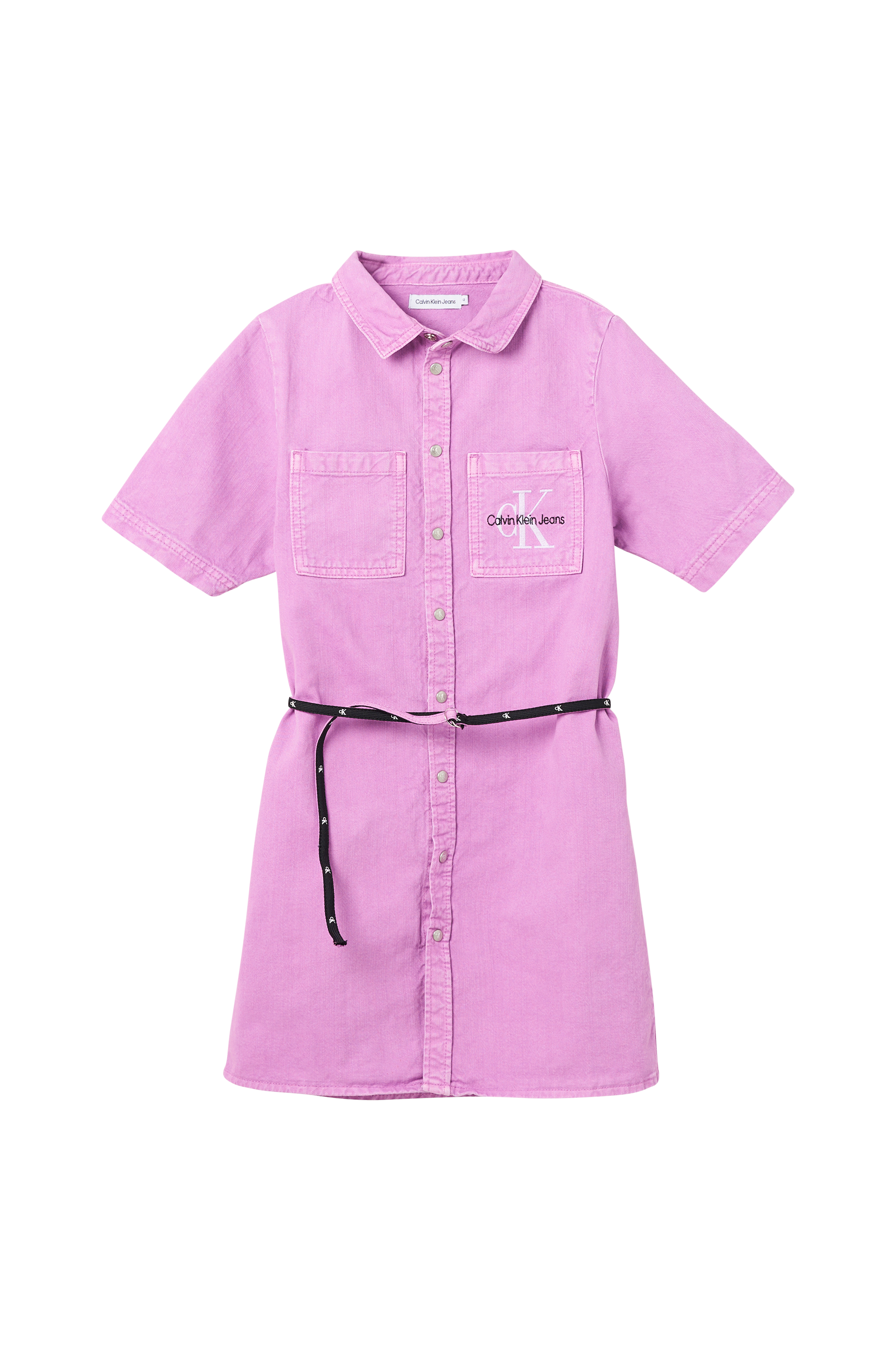 • Rosa skjortklänning i denim• Tryckknappar fram• Två bröstfickor• Smalt skärp i midjan