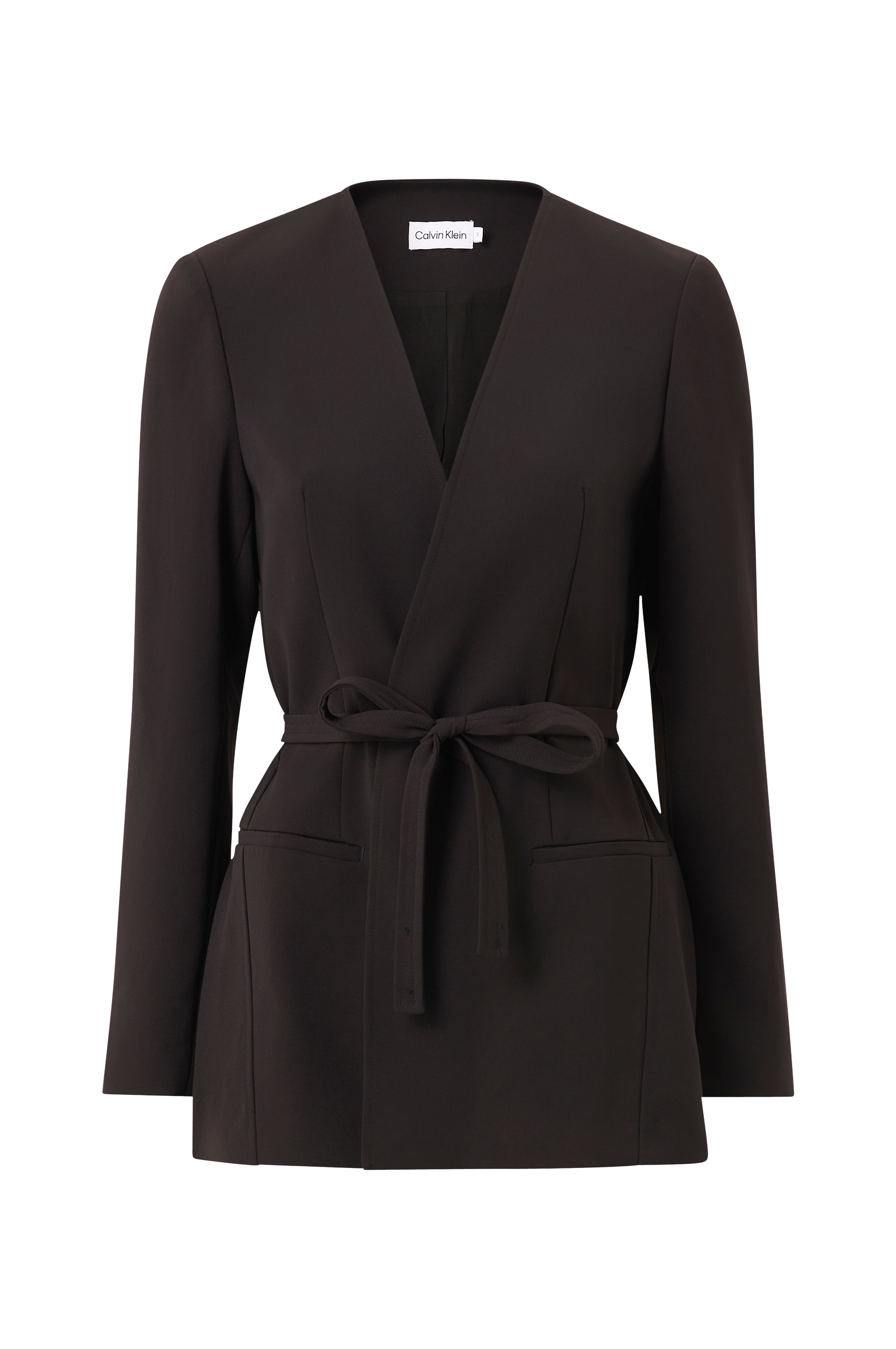 • Stilren kavaj• Öppen framsida• Knytskärp i midjan• Två fickor• Slits bak• Vävt foder• Produkten innehåller återvunnet material som har tagits tillvara för att minska mängden avfall, samtidigt som nya resurser inte har förbrukats.