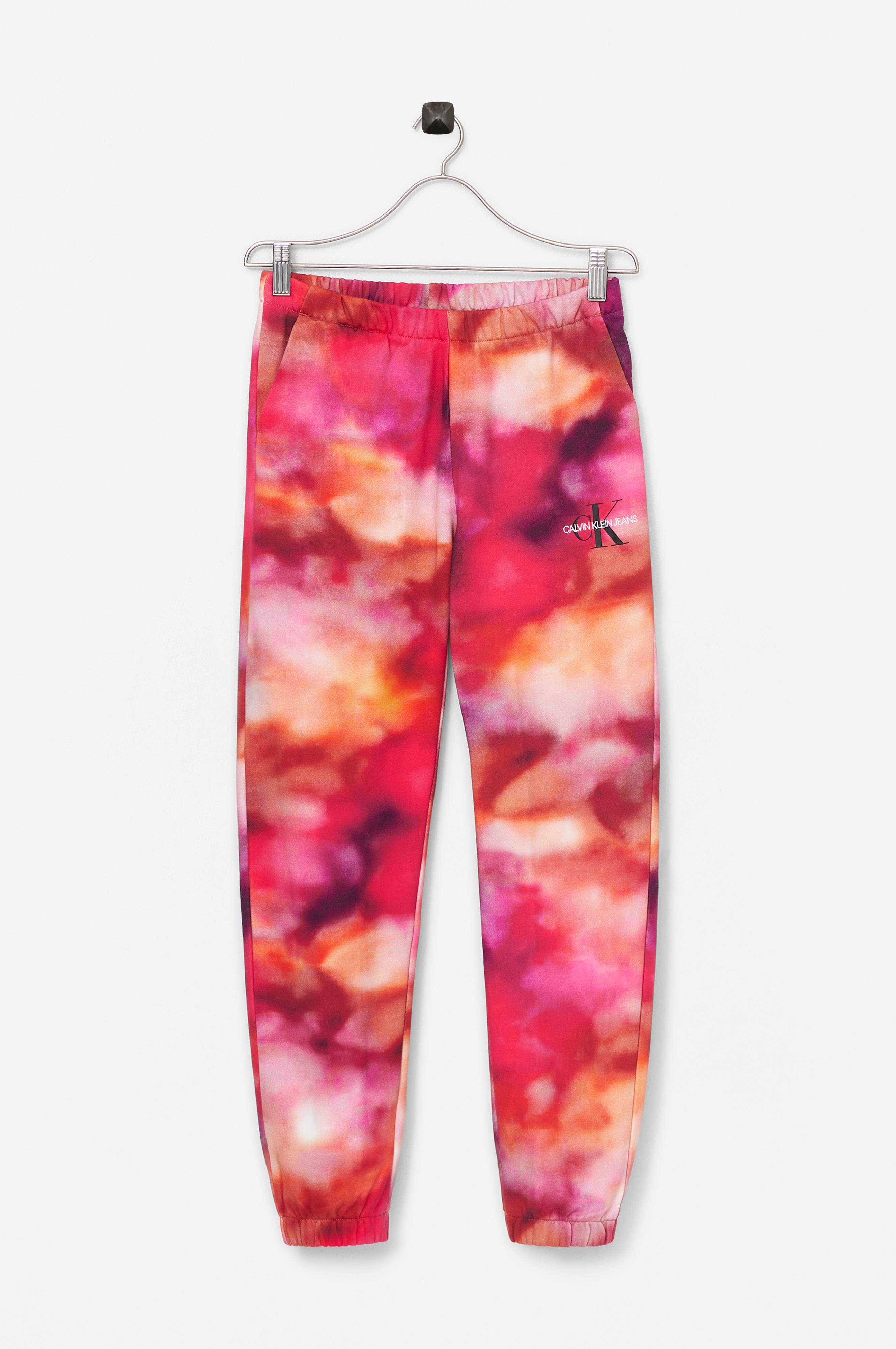 Sweatbyxor i bomull med tryckt mönster. Elastisk linning. Tryck och broderi på höften. Resårmuddar i bensluten.