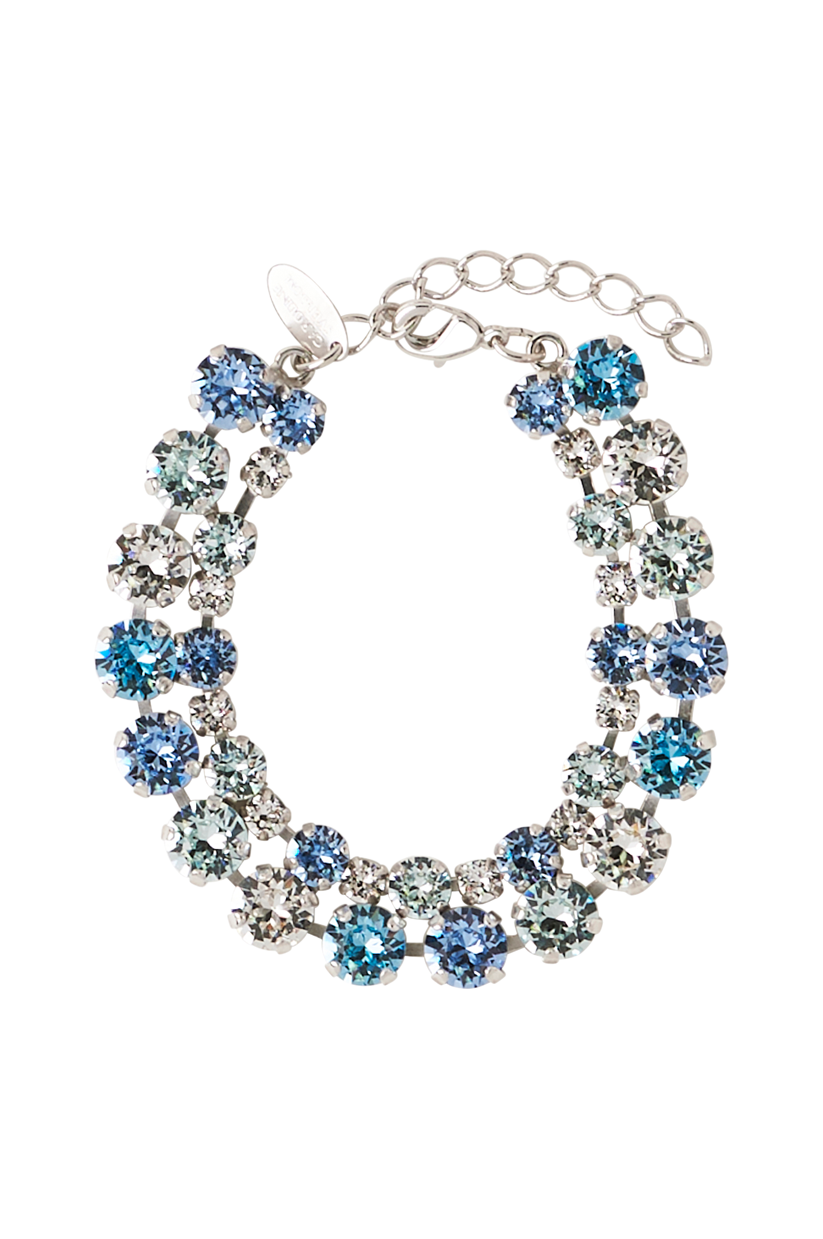 Armband designat med två rader gnistrande kristaller. Tillverkat av mässing med rhodiumplätering. Storlek: 18-20 cm. Designad i Sverige, handgjord i Grekland.