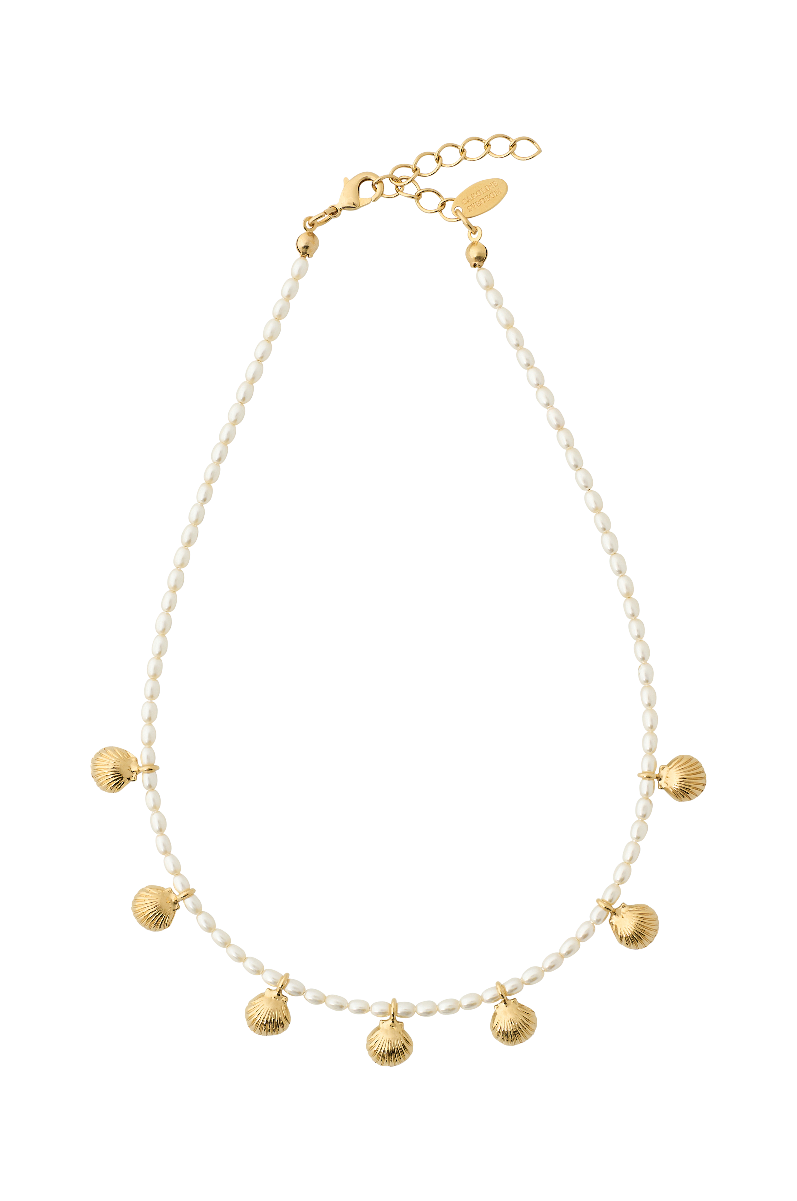 • Pärlhalsband med snäckformade hängen• 18K guldpläterad mässing• Nickelsäkert• Längd 34 cm
