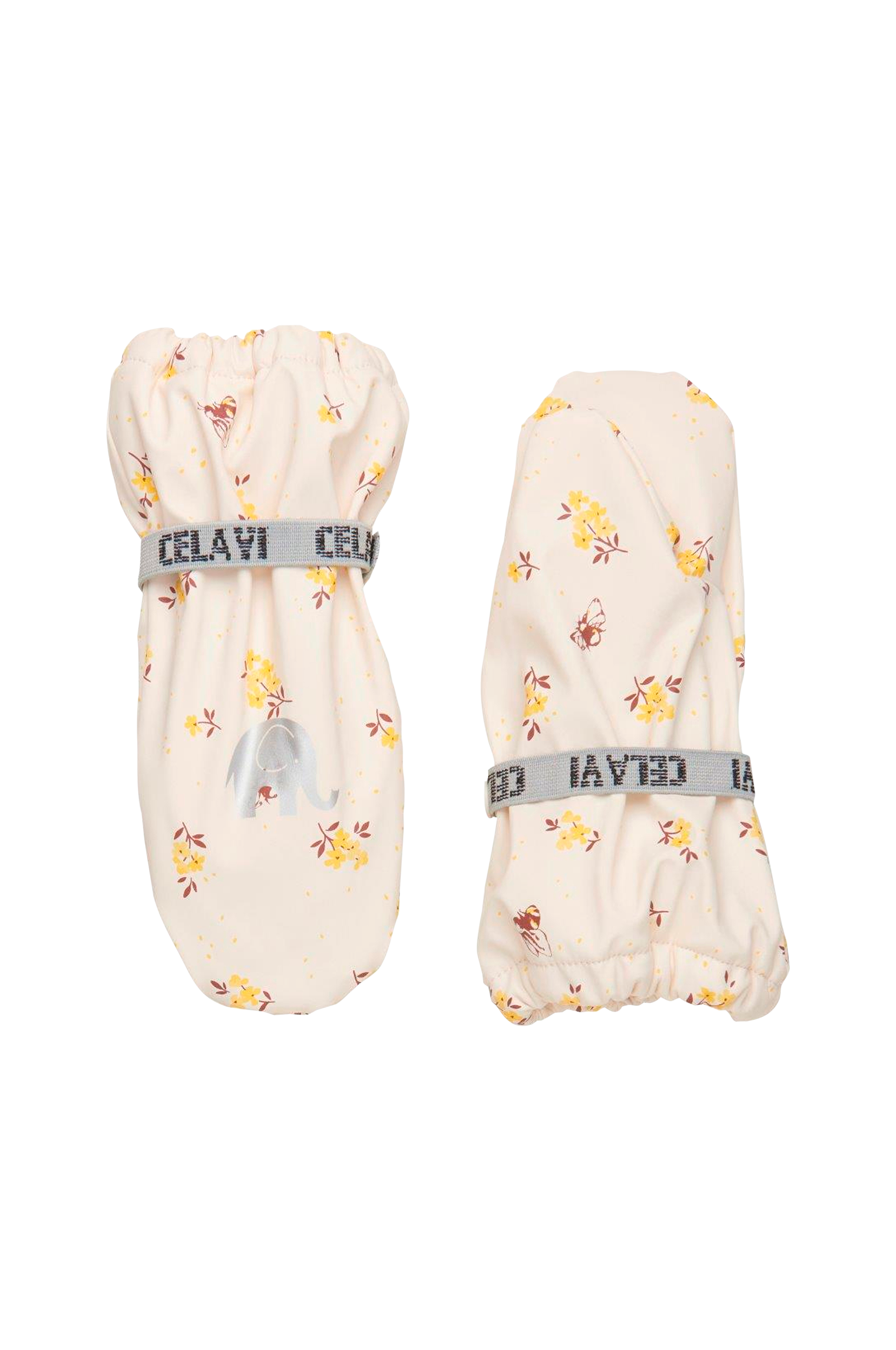 Mönstrade regnvantar med lätt vaddering och foder i mjuk fleece. Resår runt handleden.