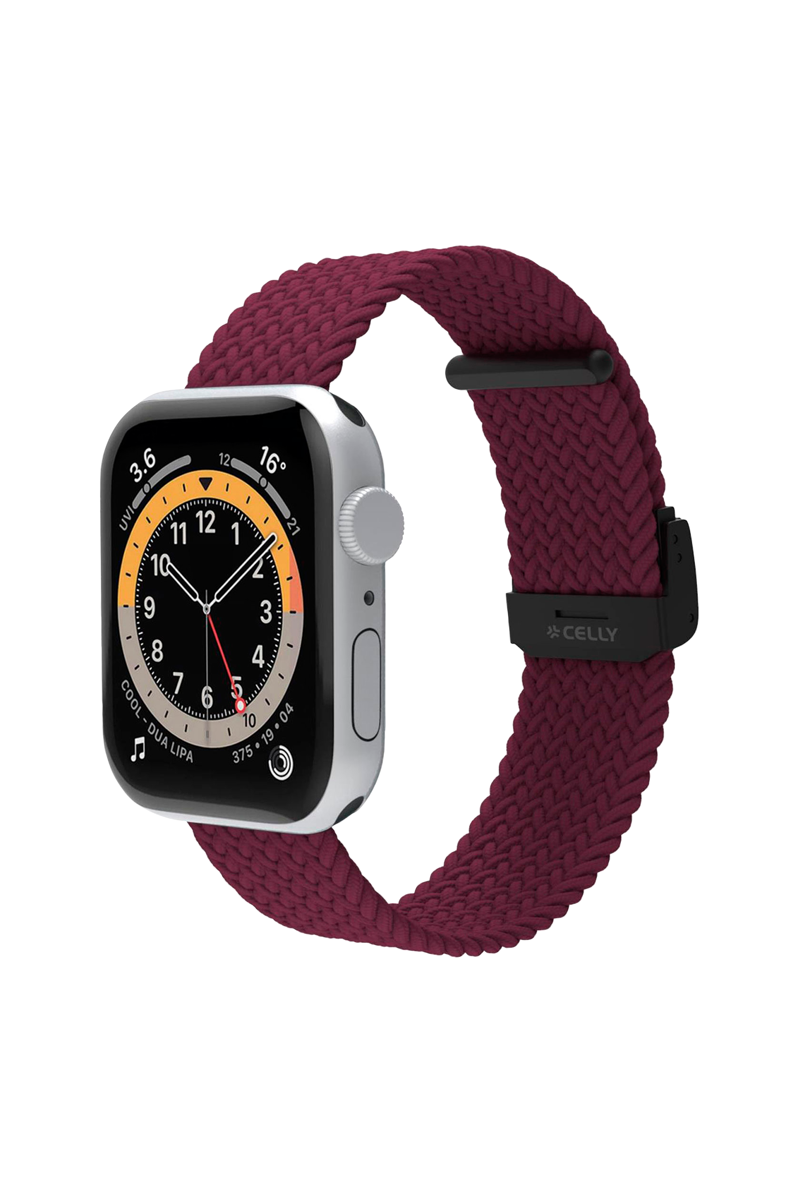 Celly WBANDBRAIDED - Apple Watch armband 42/44/45 mm- Armband till Apple Watch- Rem i mjukt vävt tyg- Bekvämt justerbar storlek- Kompatibel med Apple Watch 42/44/45 mm- Färg: Lila.