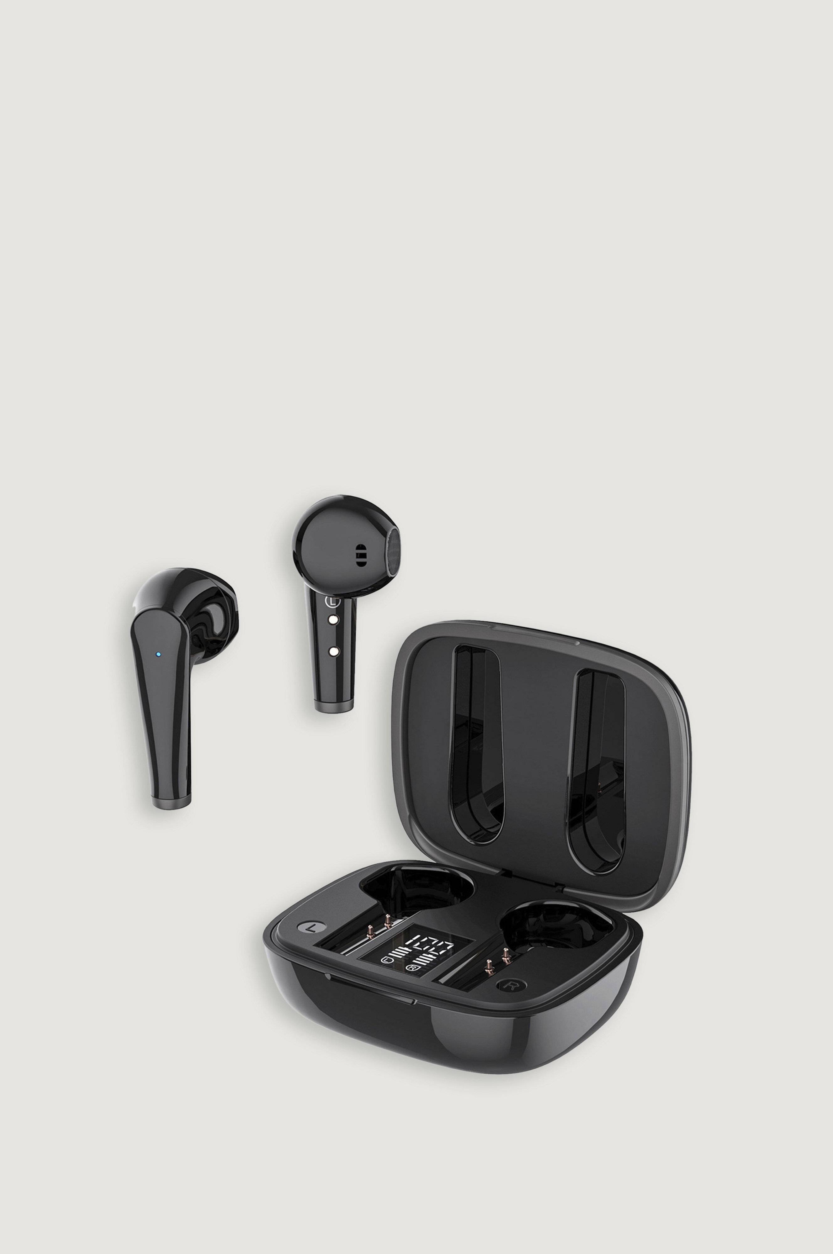 Hantera musik och samtal tack vare multifunktionknapparna på Fuz1. Placera hörlurarna i den eleganta laddningsboxen med LED-skärm för att förvara och skydda dem från repor och damm när de inte används.