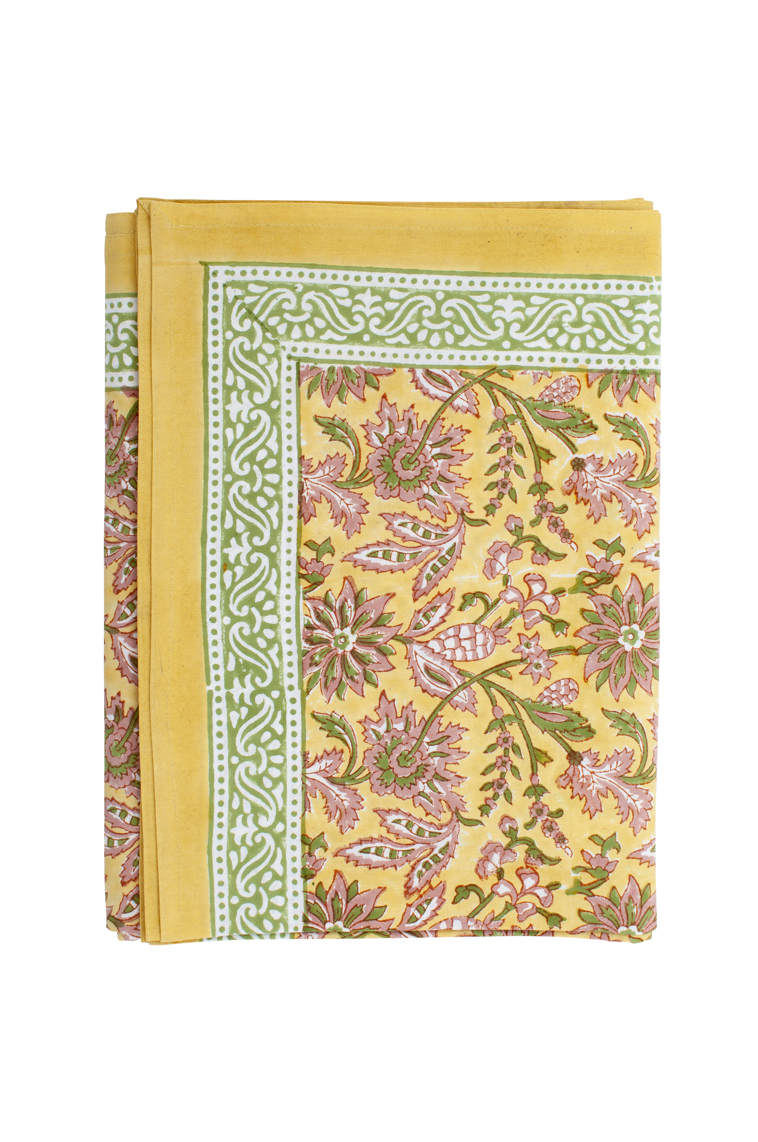 Färgrik bomullsduk från varumärket Chamois med vackert blommigt mönster. Mönstret är tryckt för hand i traditionell indisk blockprintteknik. Ett unikt hantverk som ger duken ett levande och dekorativt uttryck.
