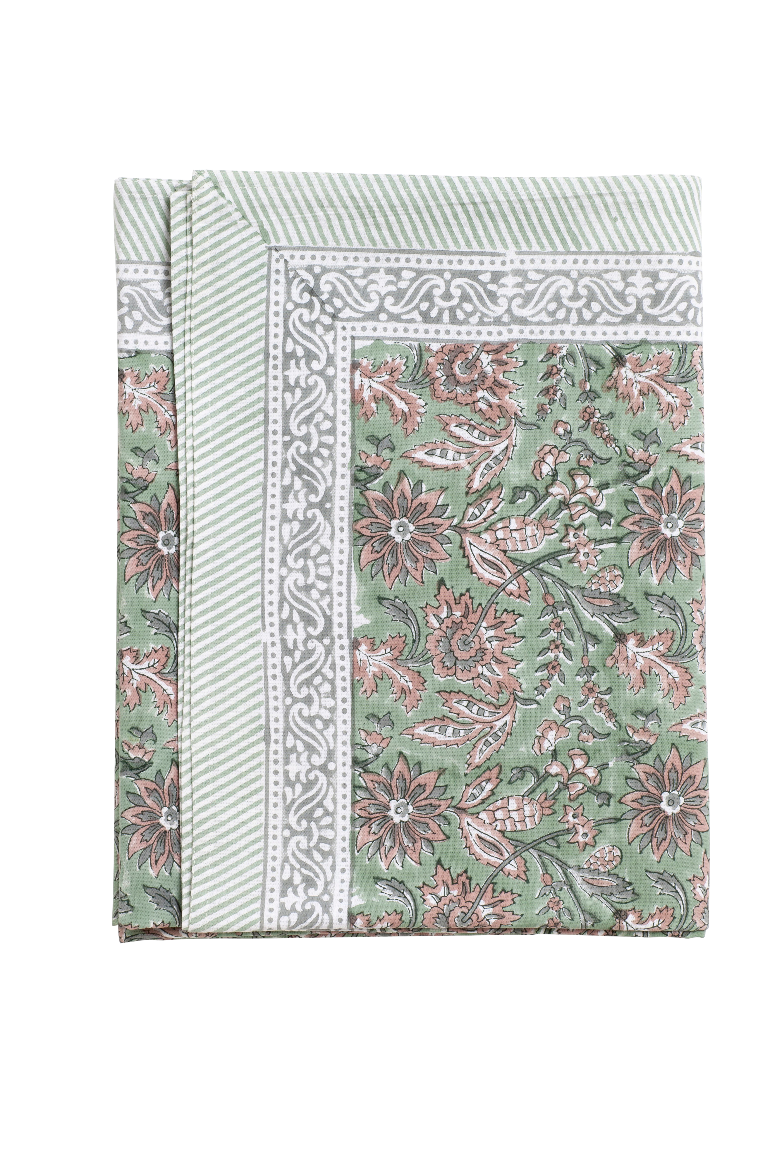 Färgrik bomullsduk från varumärket Chamois med vackert blommigt mönster. Mönstret är tryckt för hand i traditionell indisk blockprintteknik. Ett unikt hantverk som ger duken ett levande och dekorativt uttryck.