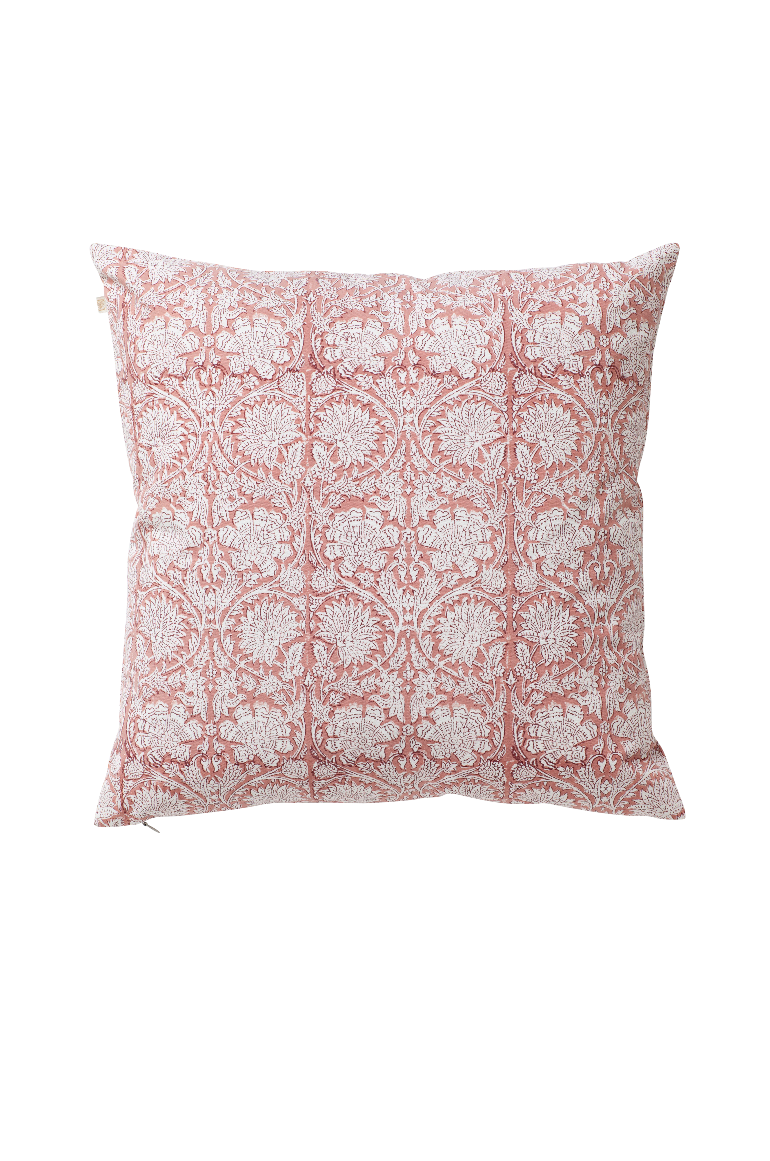 Snyggt mönstrat kuddfodral i bomull. Mönstret är handtryckt med träblock i traditionell indisk blockprintteknik. Den handgjorda tekniken ger mönstret sitt levande och dekorativa uttryck. Ett unikt hantverk som är lika vackert inne som ute.