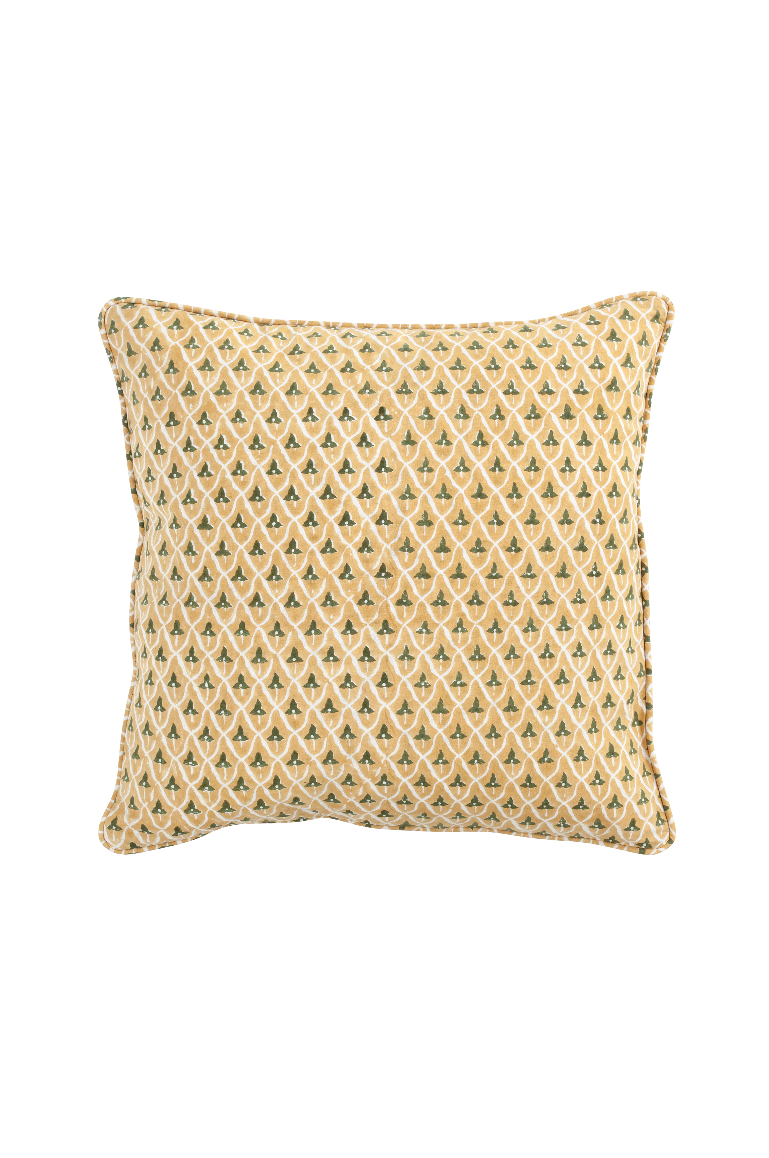 Ett vackert kuddfodral i ekologisk Gots certifierad bomull med ett småblommigt tryck. Mönstret är tryckt för hand med hjälp av traditionell indisk blocktrycksteknik. Ett unikt hantverk som ger varje textil ett unikt och dekorativt uttryck. Tvätta ditt kuddfodral i ett kort (max 1 timme) och skonsamt program för ull/silke med milt tvättmedel.