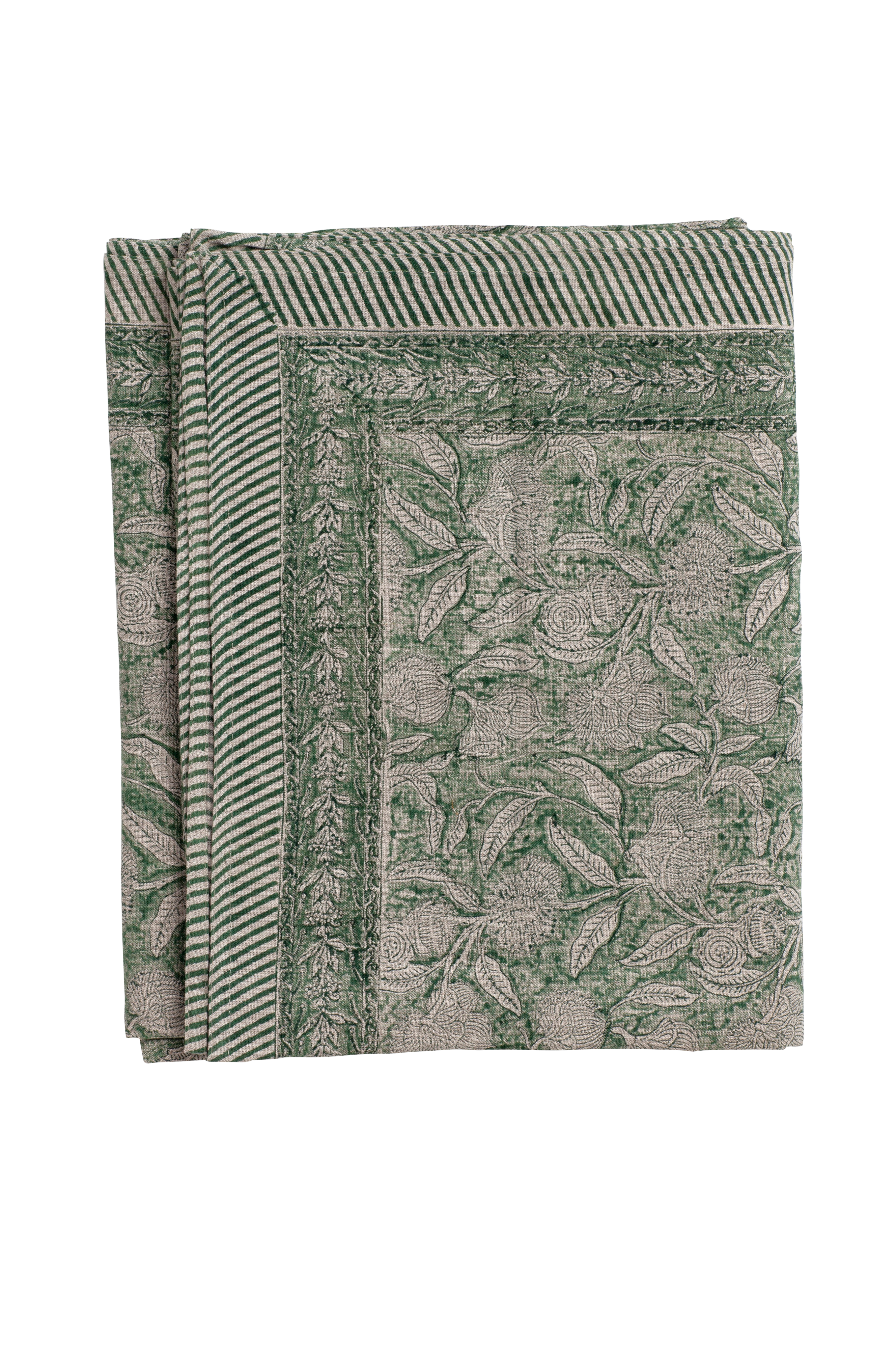 Exklusiv linneduk med vackert mönster. Mönstret är tryckt för hand med traditionell indisk blockprintteknik. Ett unikt hantverk som ger duken ett levande och dekorativt uttryck.