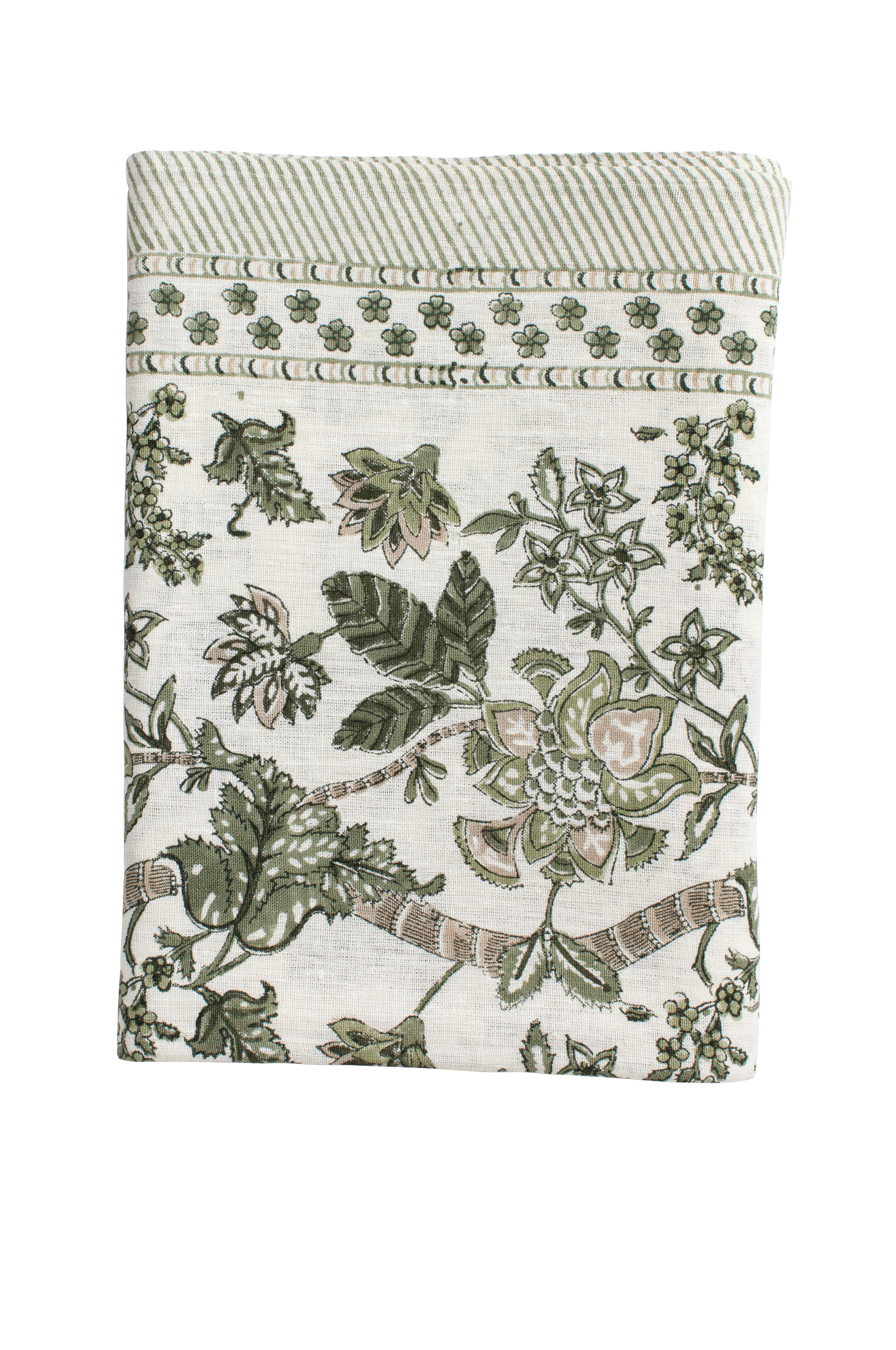 Duk i vackert mönster, tillverkat i linne. Handtryckt i traditionell indisk blockprintteknik.