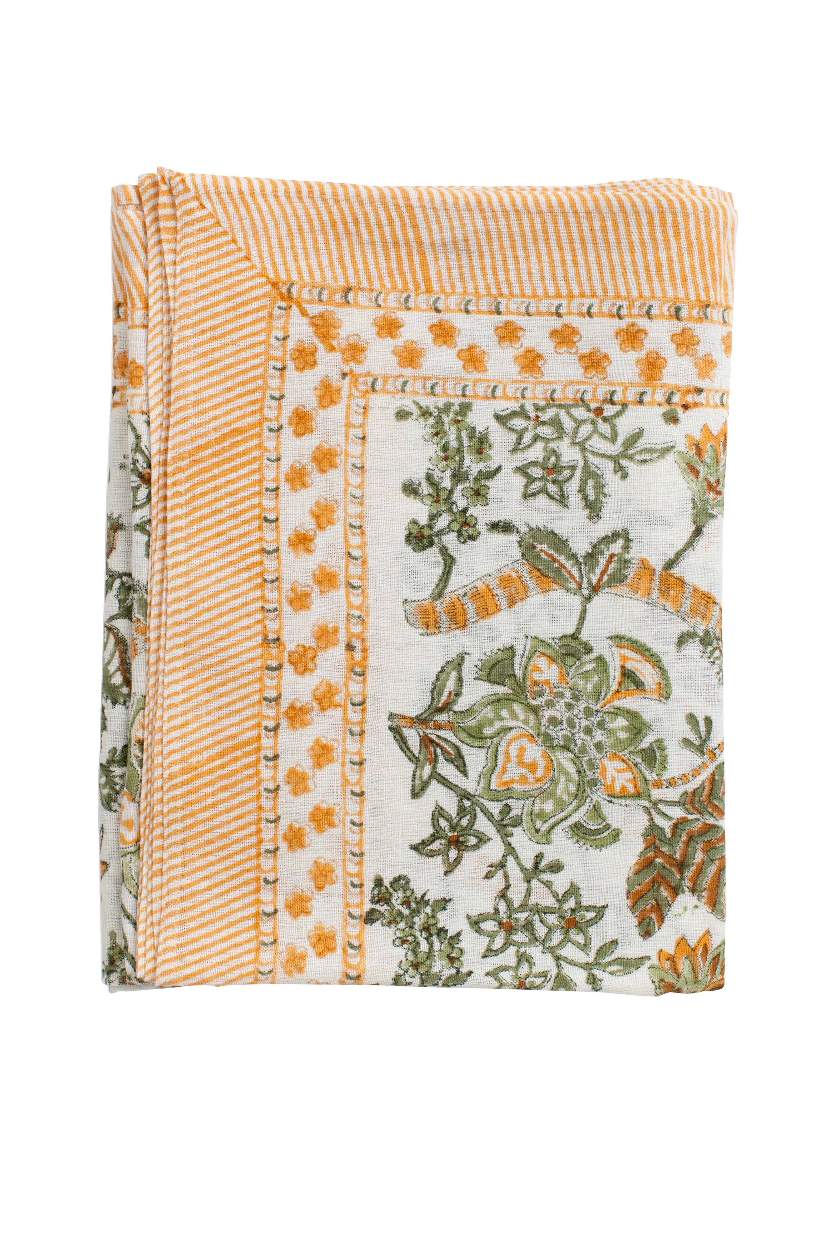 Duk i vackert mönster, tillverkat i linne. Handtryckt i traditionell indisk blockprintteknik.