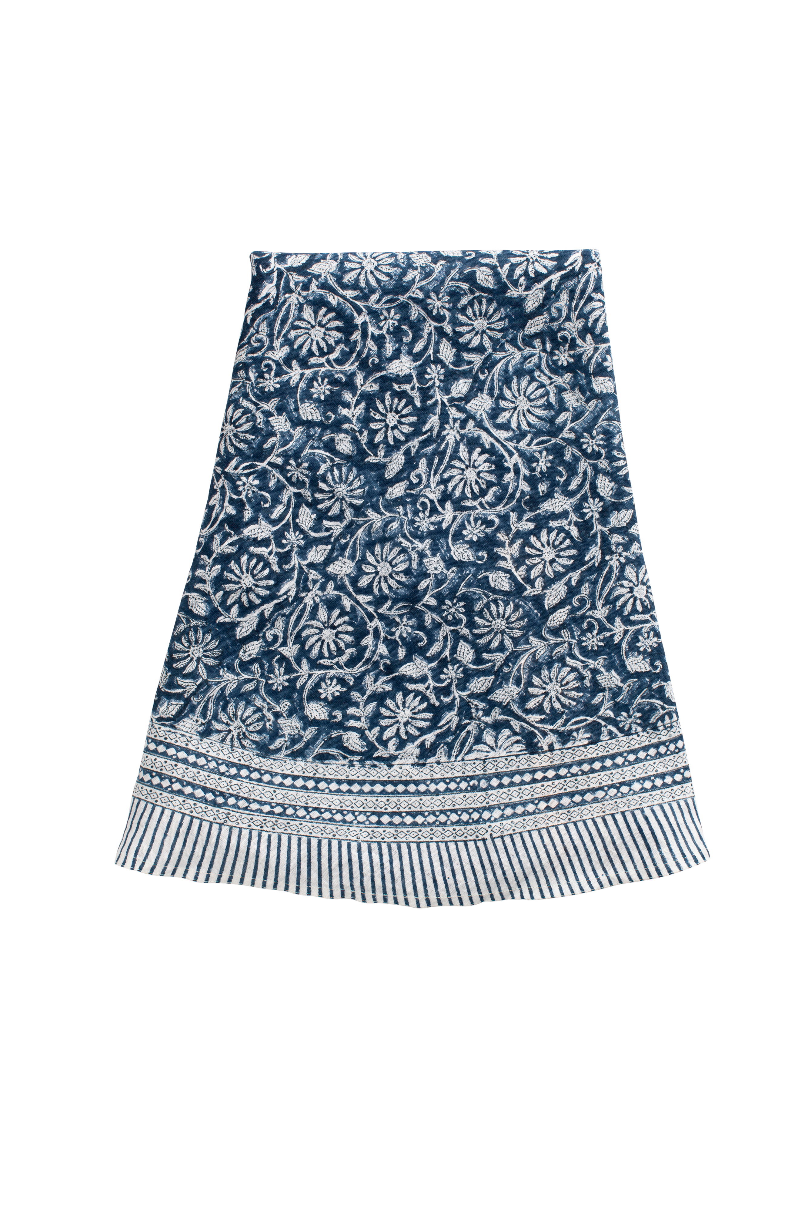 Rund linneduk med vackert mönster. Mönstret är tryckt för hand i traditionell indisk blockprintteknik. Ett unikt hantverk som ger duken ett levande och dekorativt uttryck.