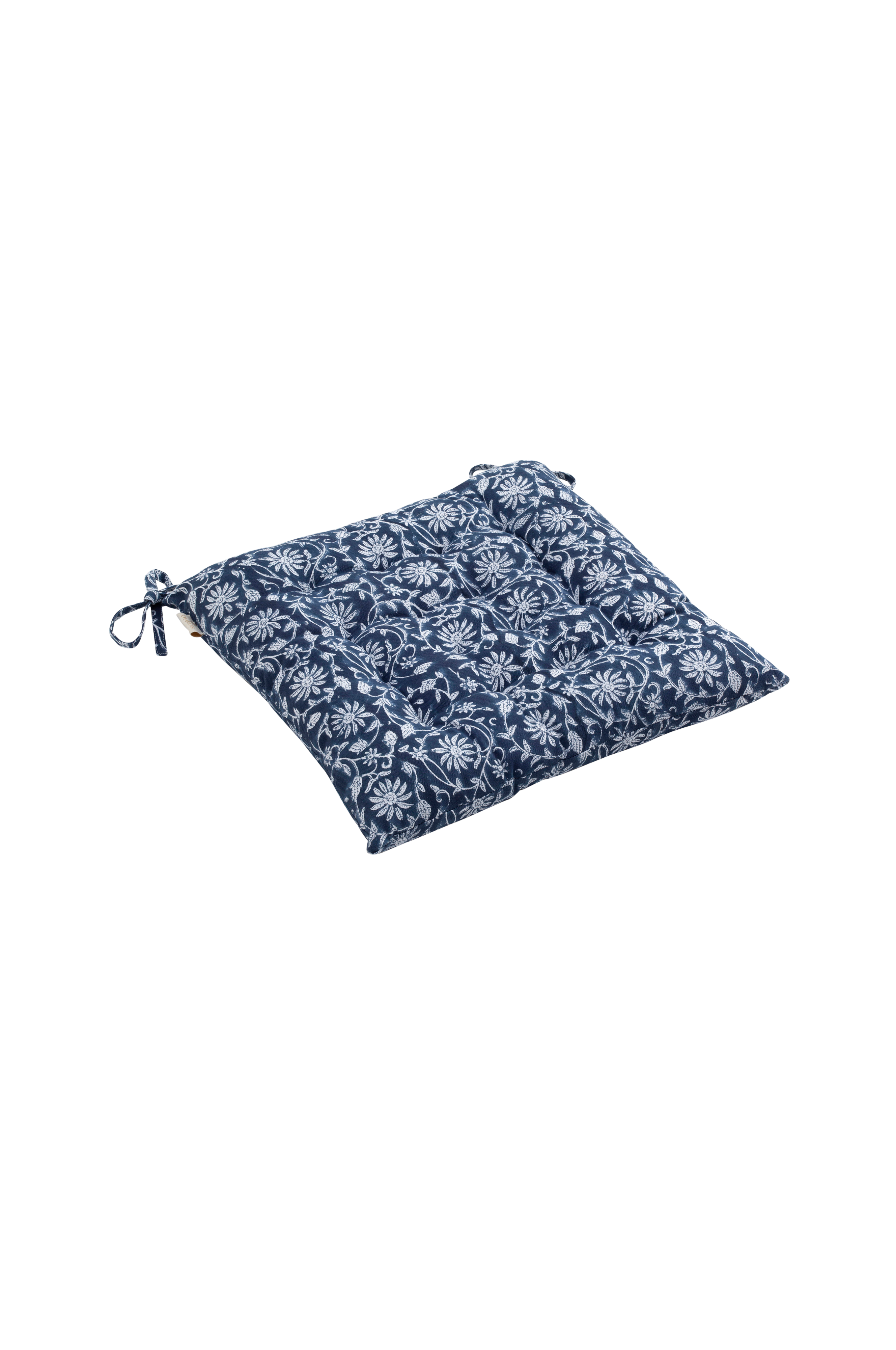 Sittdyna med vackert mönster. Kommer i flera storlekar. Tyget är tryckt för hand i klassisk indisk blockprint teknik. En urgammal teknik som ger mönstret sitt levande och dekorativa uttryck. Tvätta i 30 grader ull/silke program med flytande milt tvättmedel utan blekmedel. Får ej torktumlas. Kan strykas varmt.