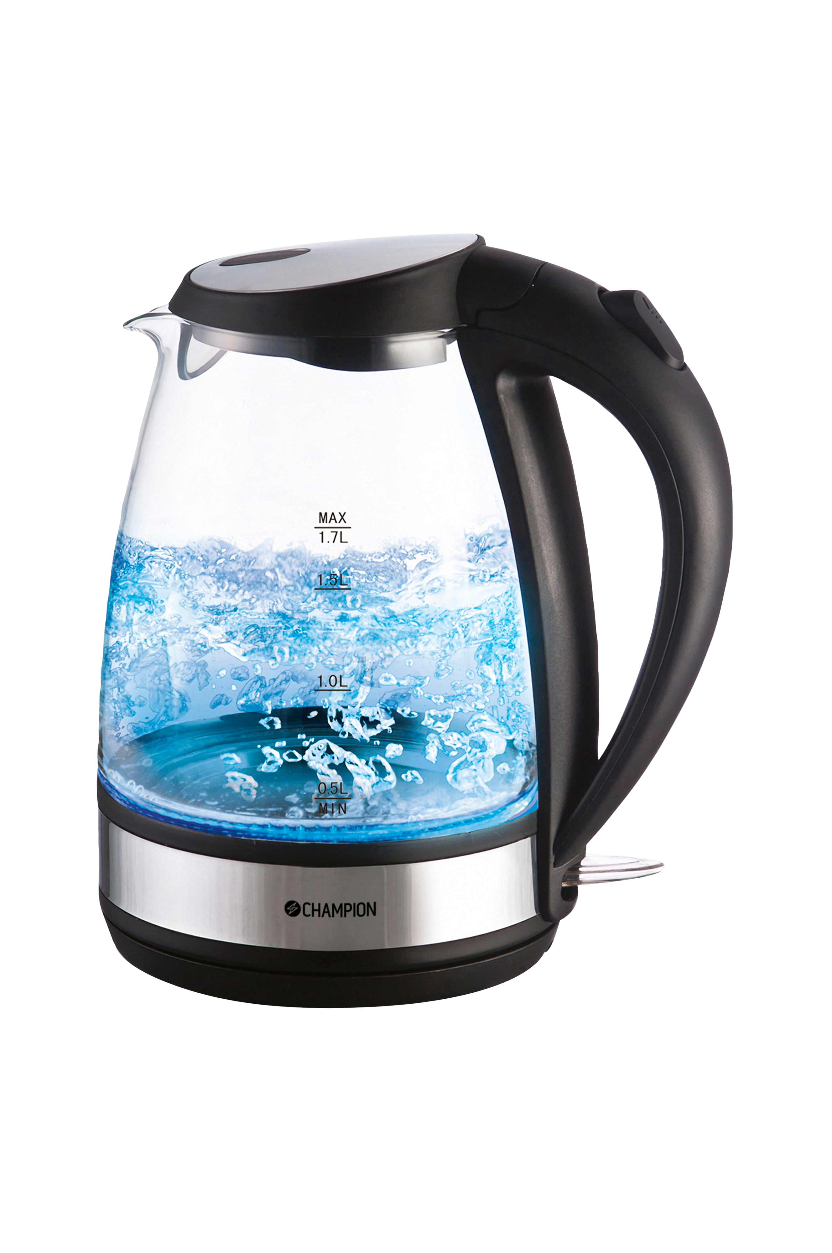 Champion CHVK210 är en snygg vattenkokare med en kanna helt i glas. Tack vare glaskannan kan du följa hela uppvärmningen, den blå ledbelysningen i botten förvandlar bubblorna i vattnet till ett vackert skådespel. Med en volym på 1,7l har du en vattenkokare som passar utmärkt vid alla tillfällen. Med den genomskinliga kannan är det enkelt att kontrollera vattennivån och även följa hela uppvärmningsprocessen.