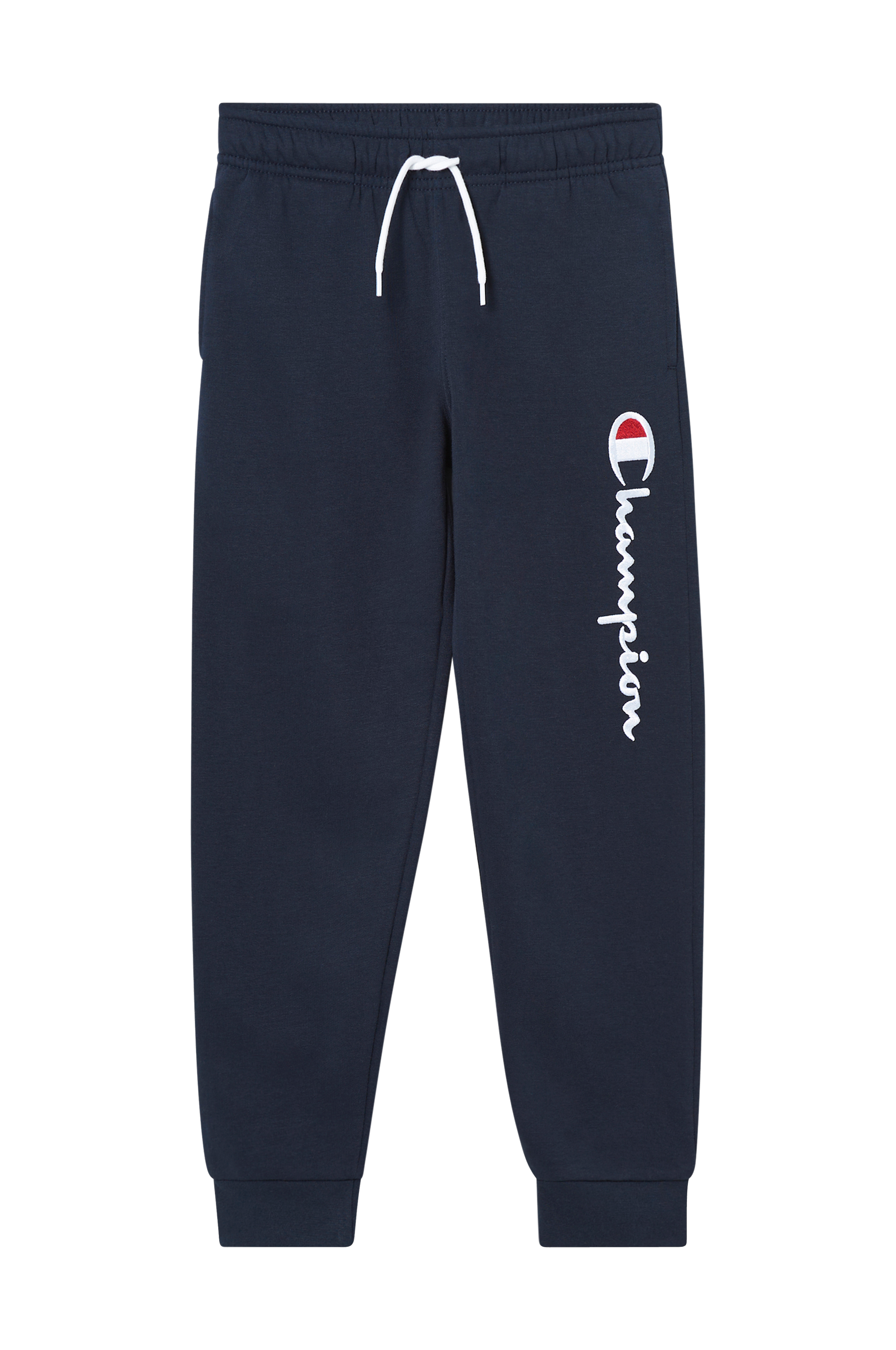 • Stor, broderad logga på ena benet