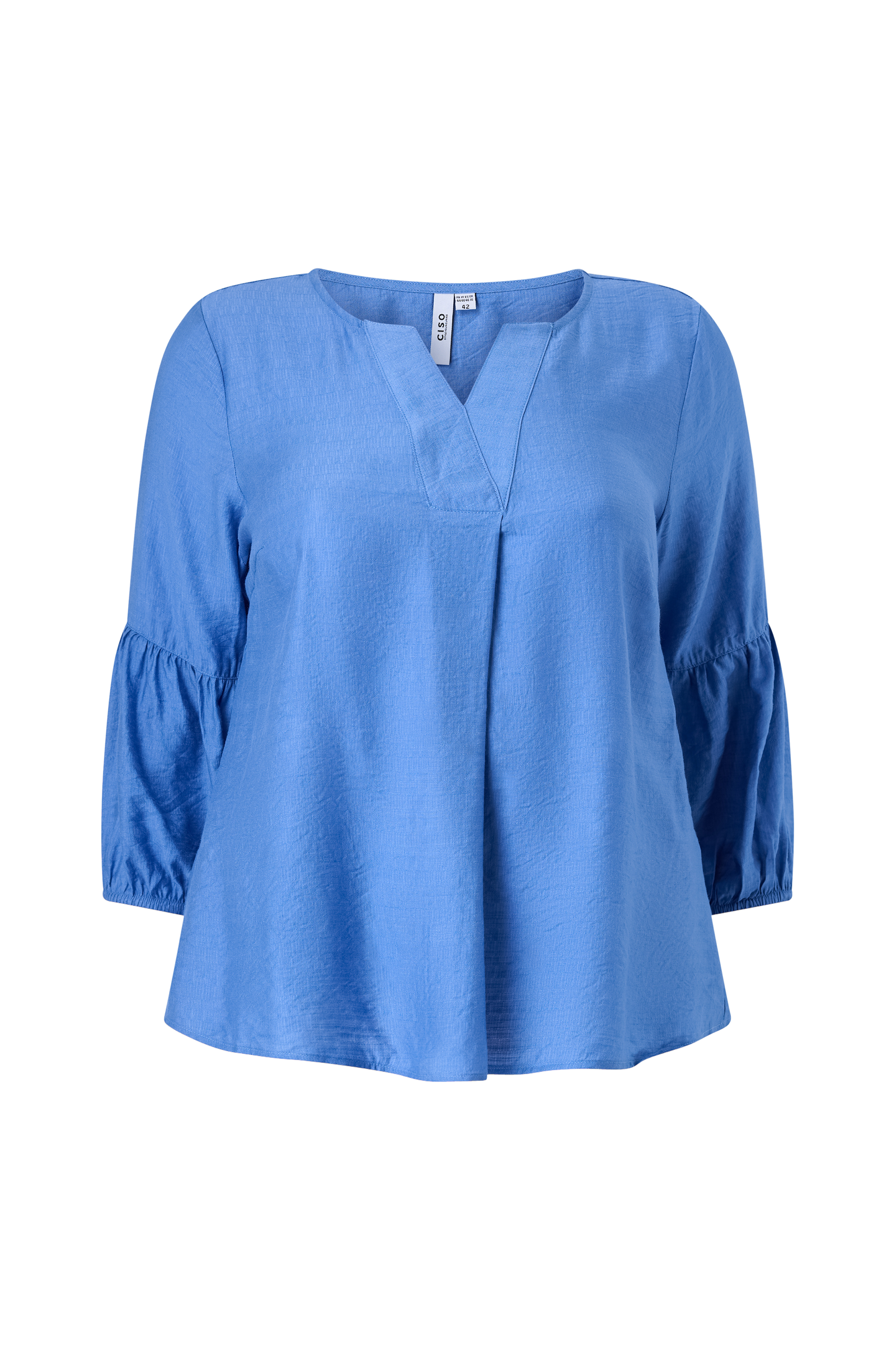 • Blus i lätt krinklat material• Rund halsringning med v-ringad detalj• Halvlånga ärmar med dekorativt rynk i mitten och elastiska ärmslut• Plusstorlekar
