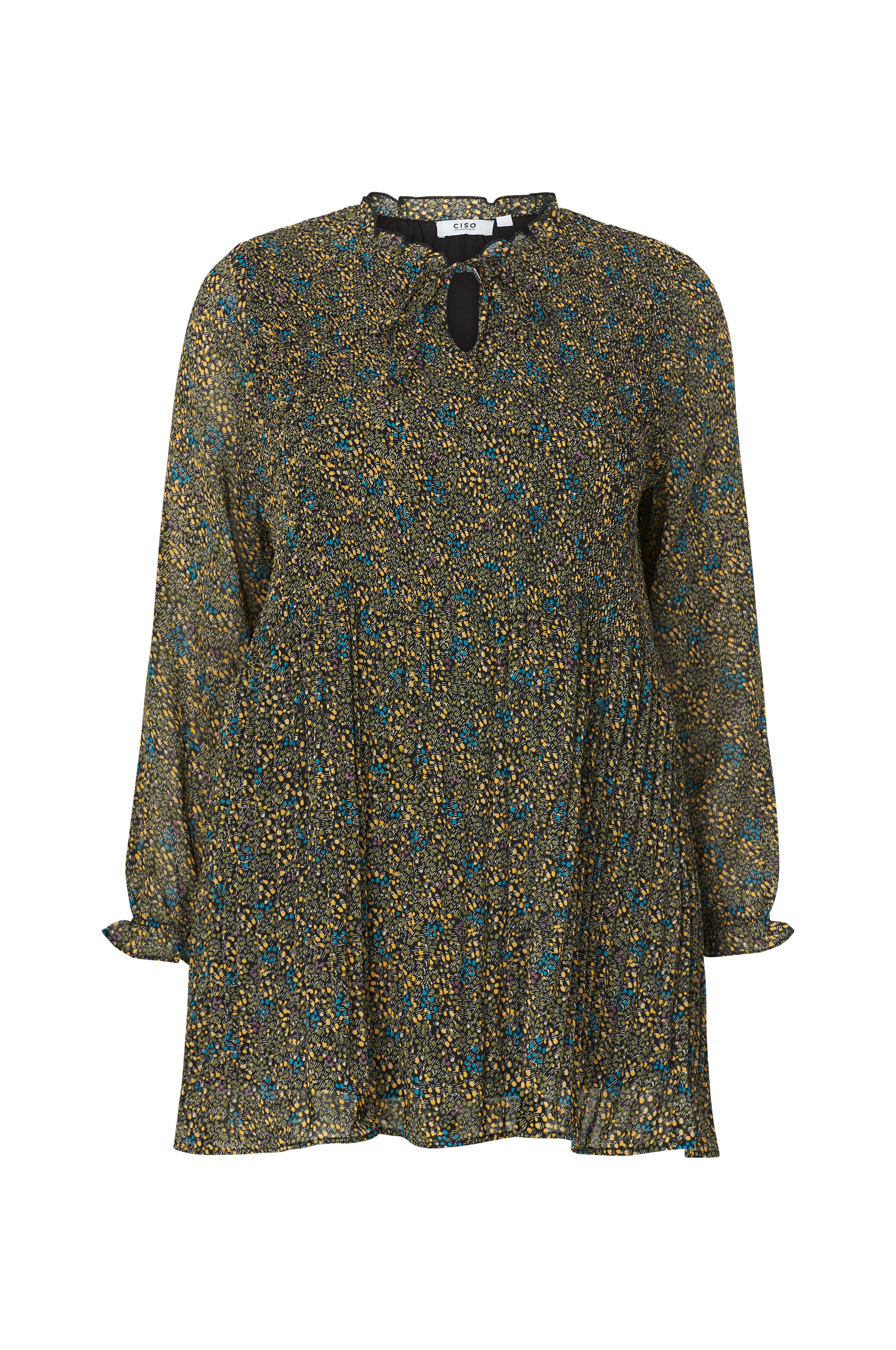 • Plisserad tunika• Rund hals med volang• Sprund med knytband fram• Långa ärmar med volang i ärmsluten• Trikåfoder• Plusstorlekar• Längd: 86 cm i storlek M