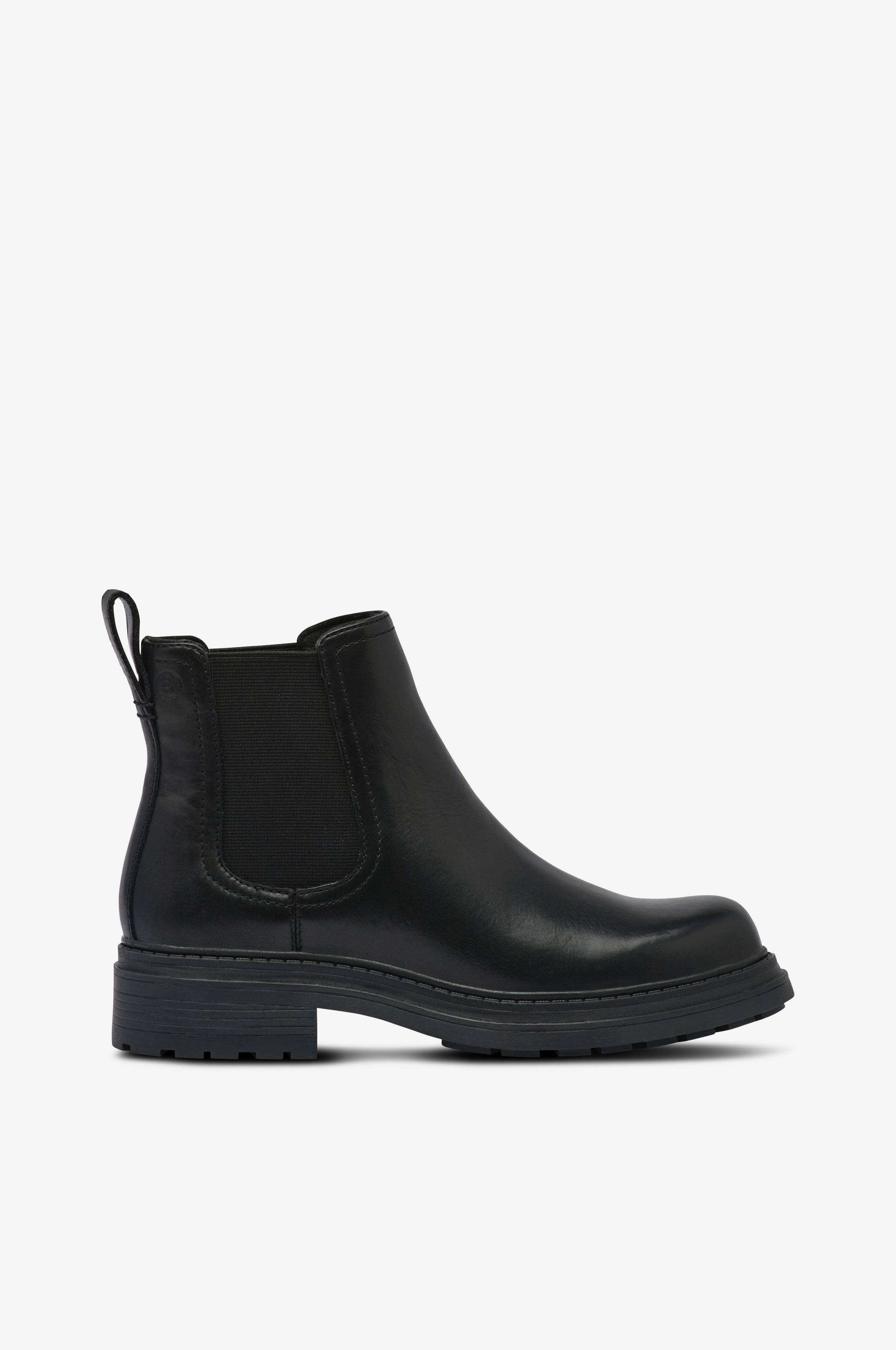 • Ovandel i skinn• Resårpanel på skaftets båda sidor• Draghälla bak på skaftet• Innerfoder i textil• Mjukstoppad innersula i skinn• Yttersula i gummi