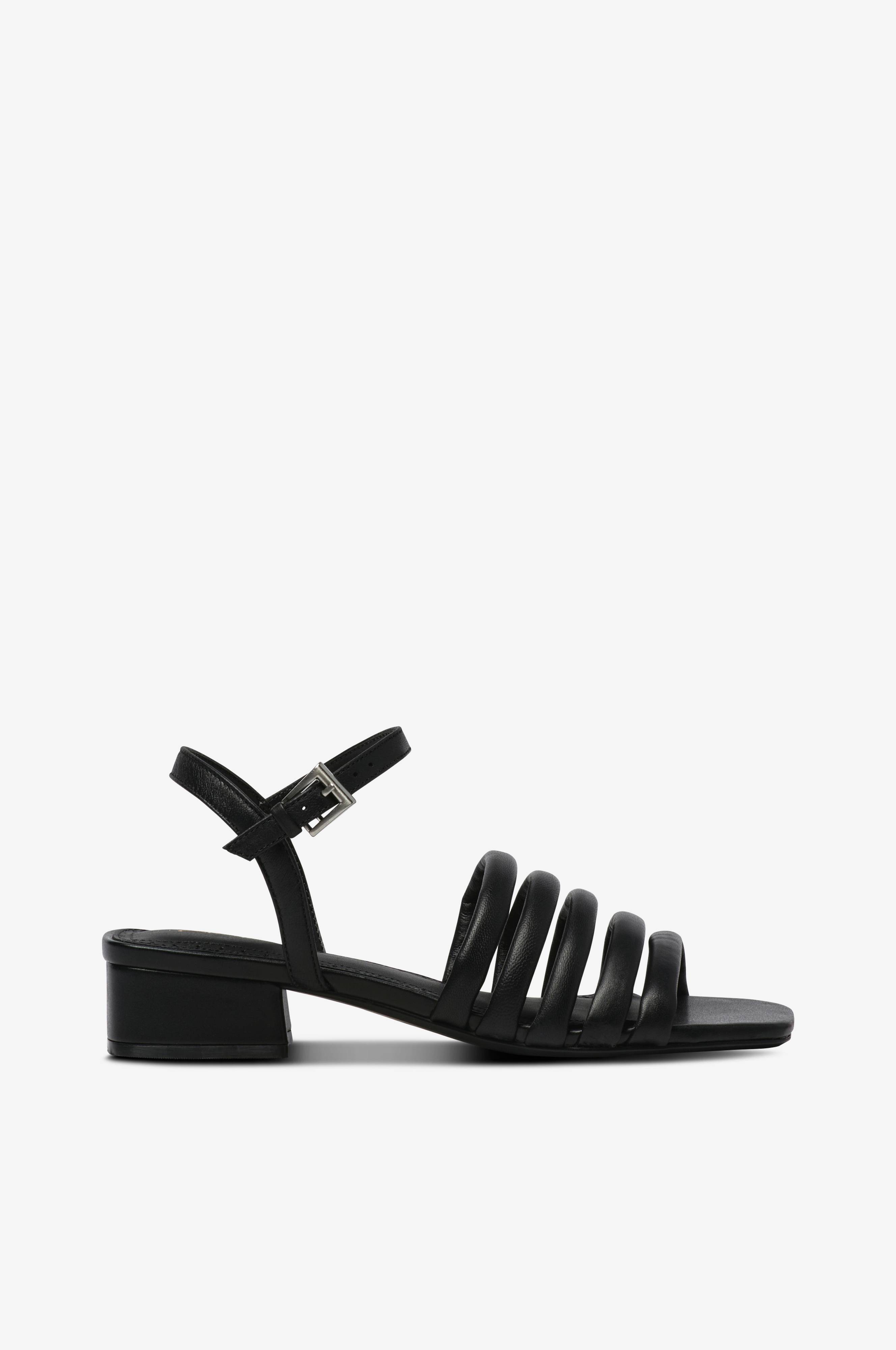 • Remmar i läder• Justerbar rem vid ankeln med metallspänne• Fyrkantig tåform• Klackhöjd: 3,5 cm