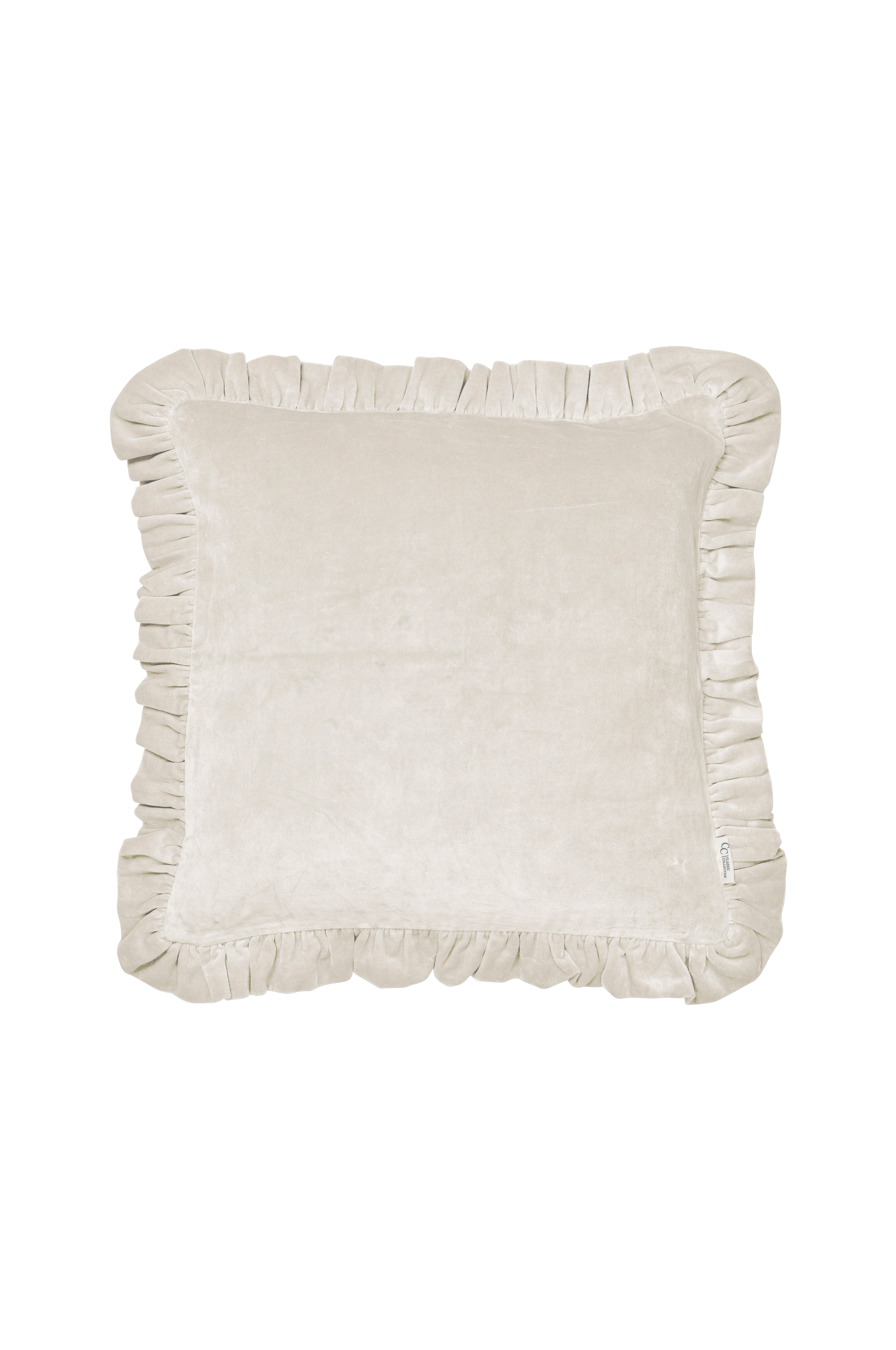 Detta kuddfodral kombinerar stil och komfort för att ge din inredning en uppfriskande touch. Det mjuka, högkvalitativa tyget skapar en lugn och inbjudande atmosfär, medan den dekorativa volangen längs kanterna ger en charmig och sofistikerad detalj.