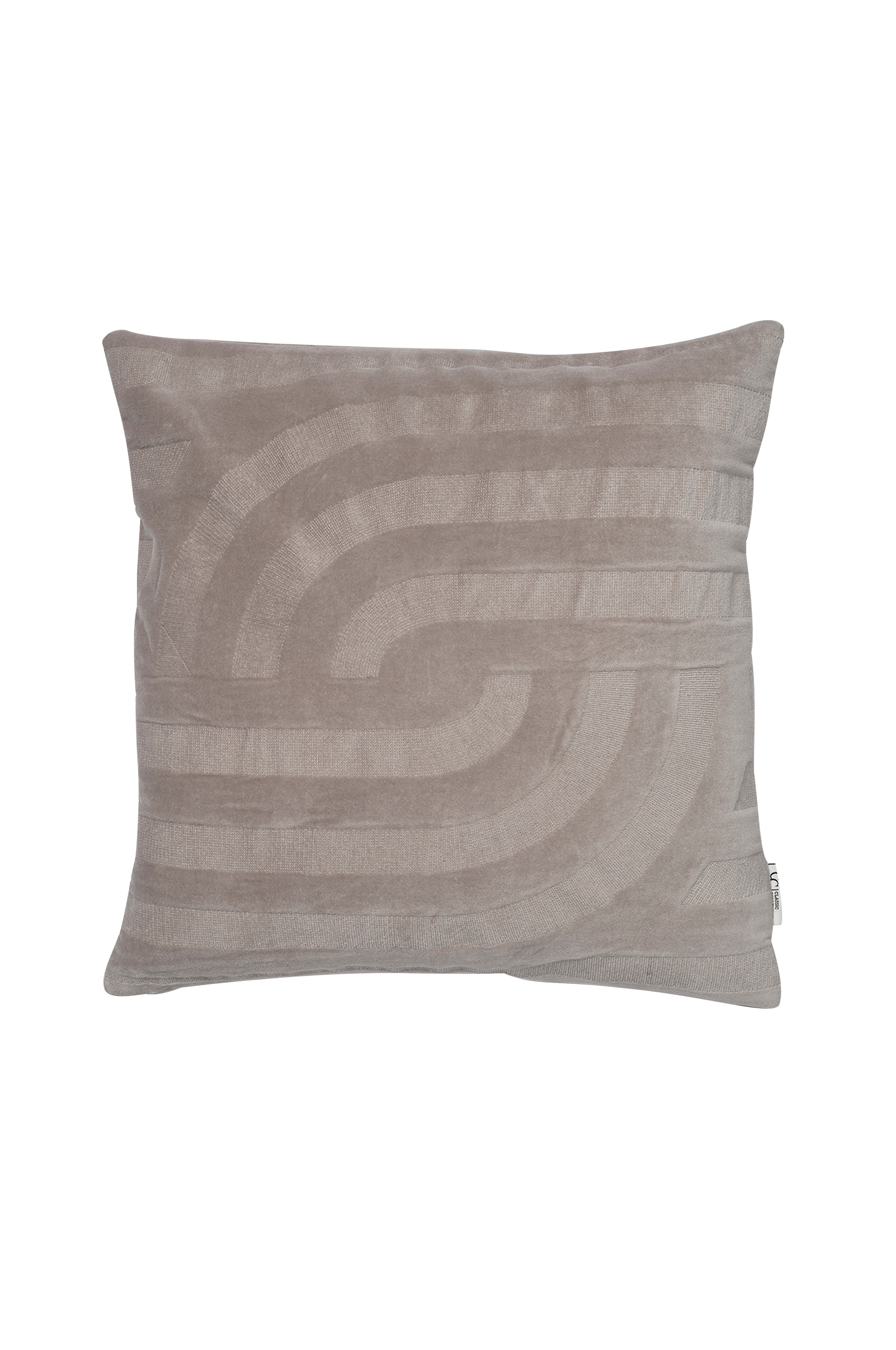 Wave kuddfodral i bomullssammet med broderat spegelvänt mönster. Slät baksida i sammet och dragkedja i botten.