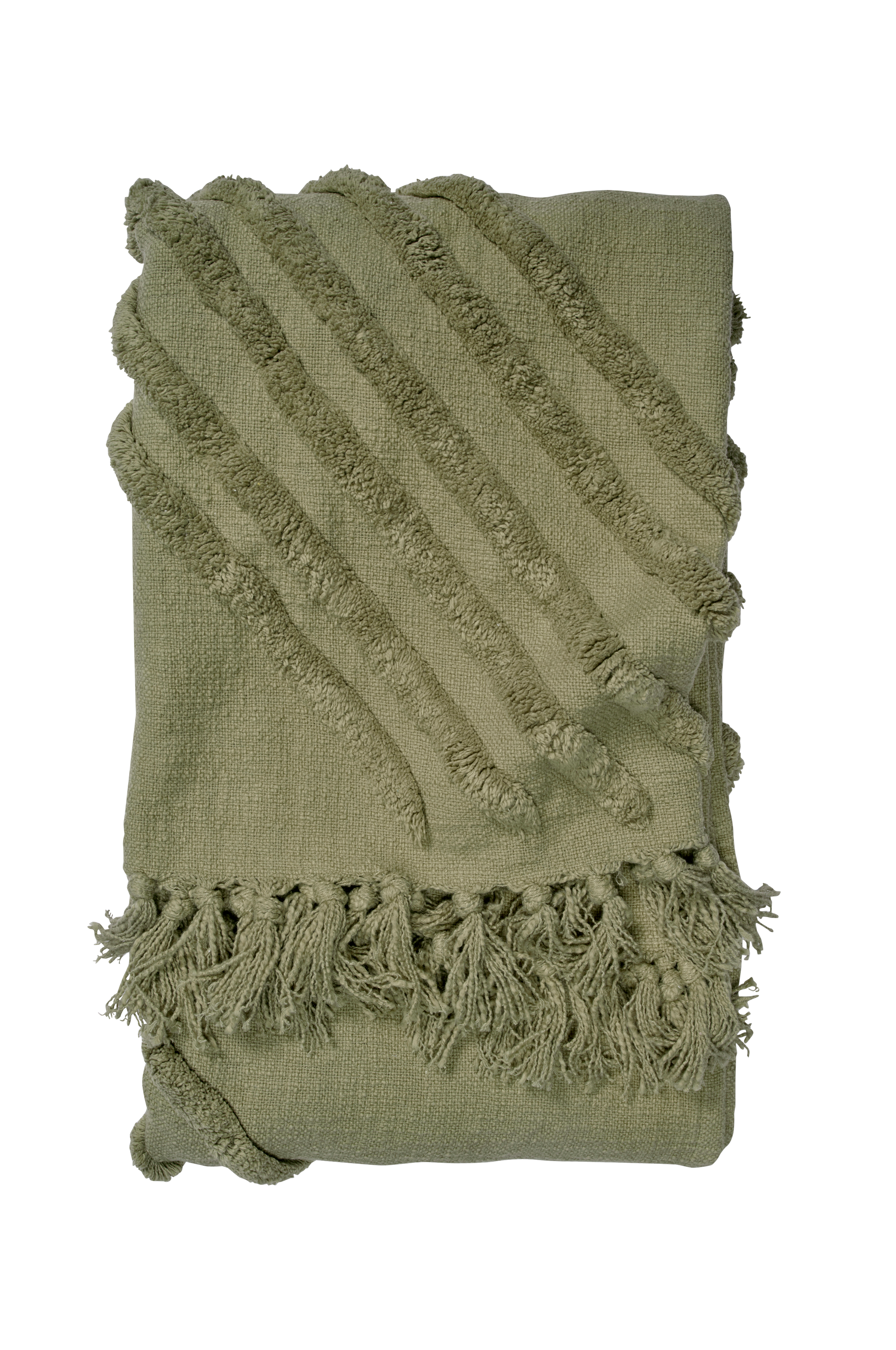 Mjuk bomullspläd i bomull med applikationer i lugg.