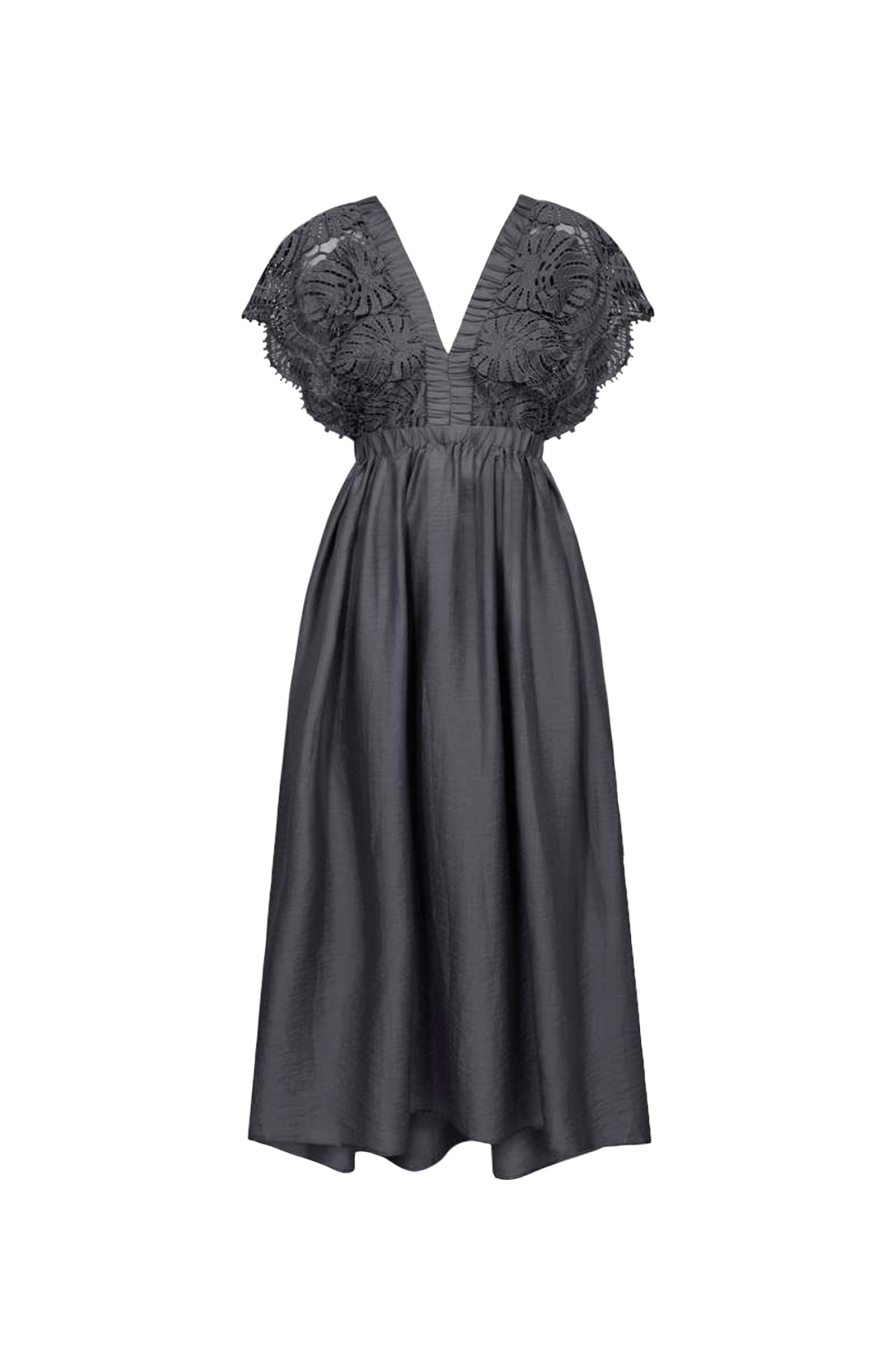 • Lång, v-ringad klänning