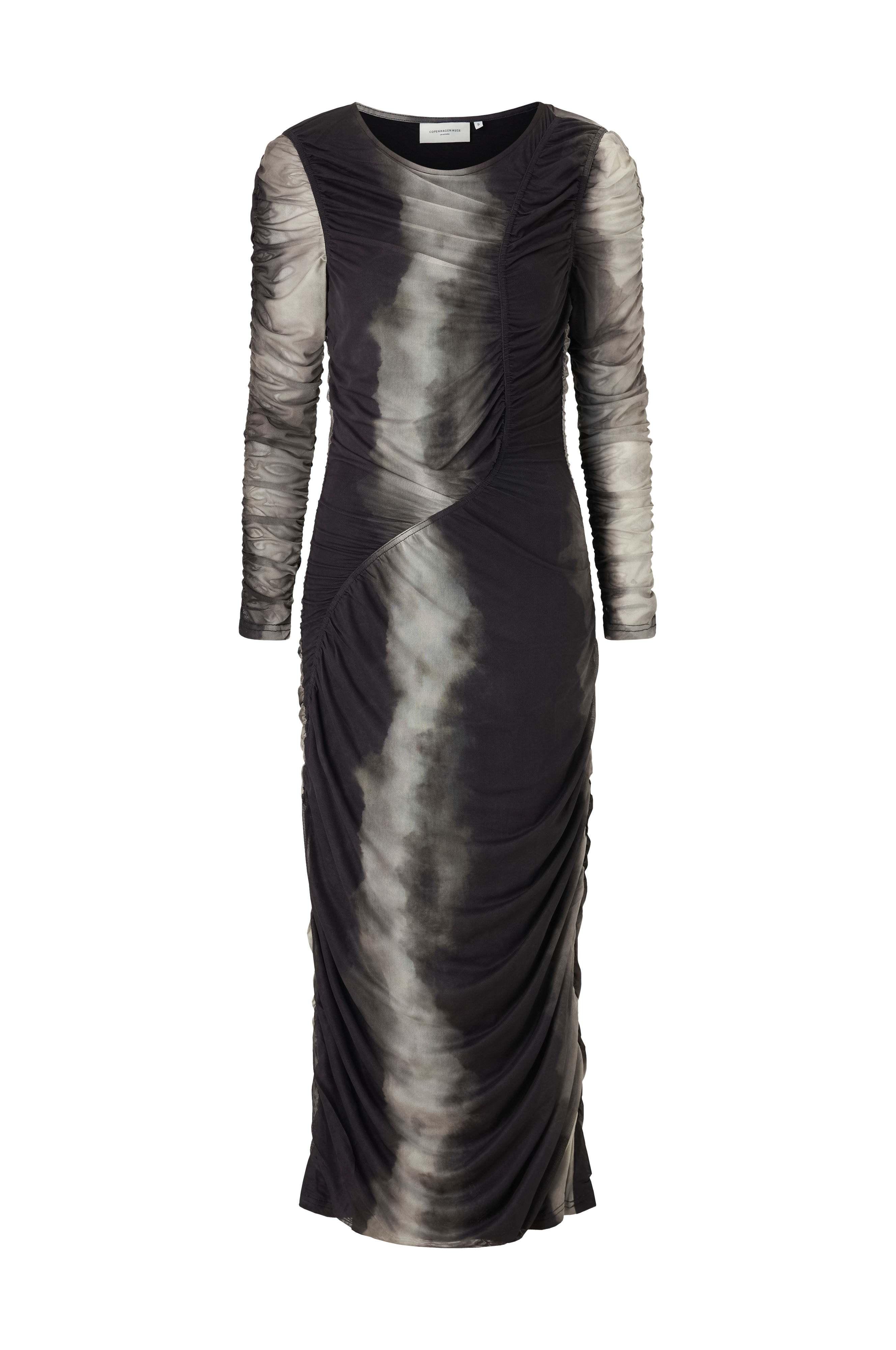 • Fodrad maxiklänning i stretchig, halvtransparent mesh• Rund halsringning• Långa, ofodrade ärmar med rynkeffekter• Rynkade, draperade detaljer framtill och baktill• Längd: 132 cm i storlek S