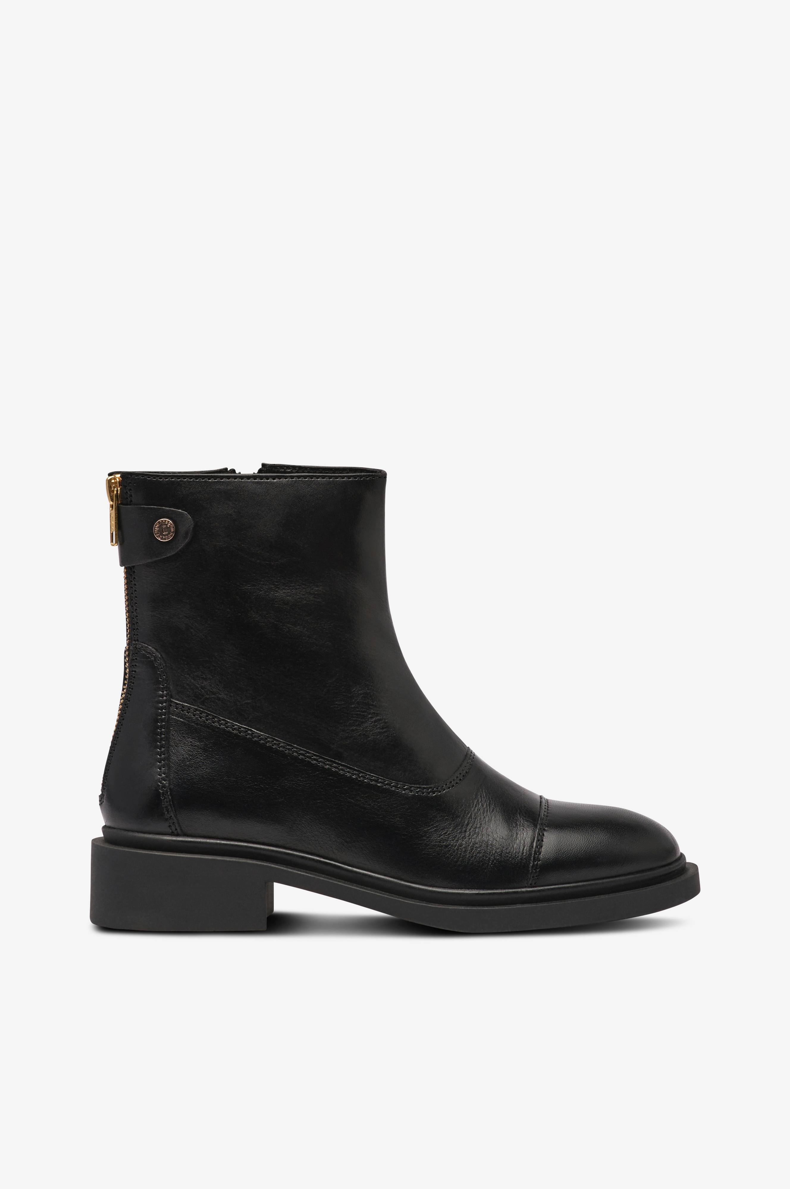 • Boots i läder• Dragkedja på insidan av skaftet• Dekorativ dragkedja bak• Remdetalj upptill på skaftet• Foder i textil och skinn• Mjukstoppad innersula• Yttersula i syntet• Skafthöjd: 16 cm i stl 37
