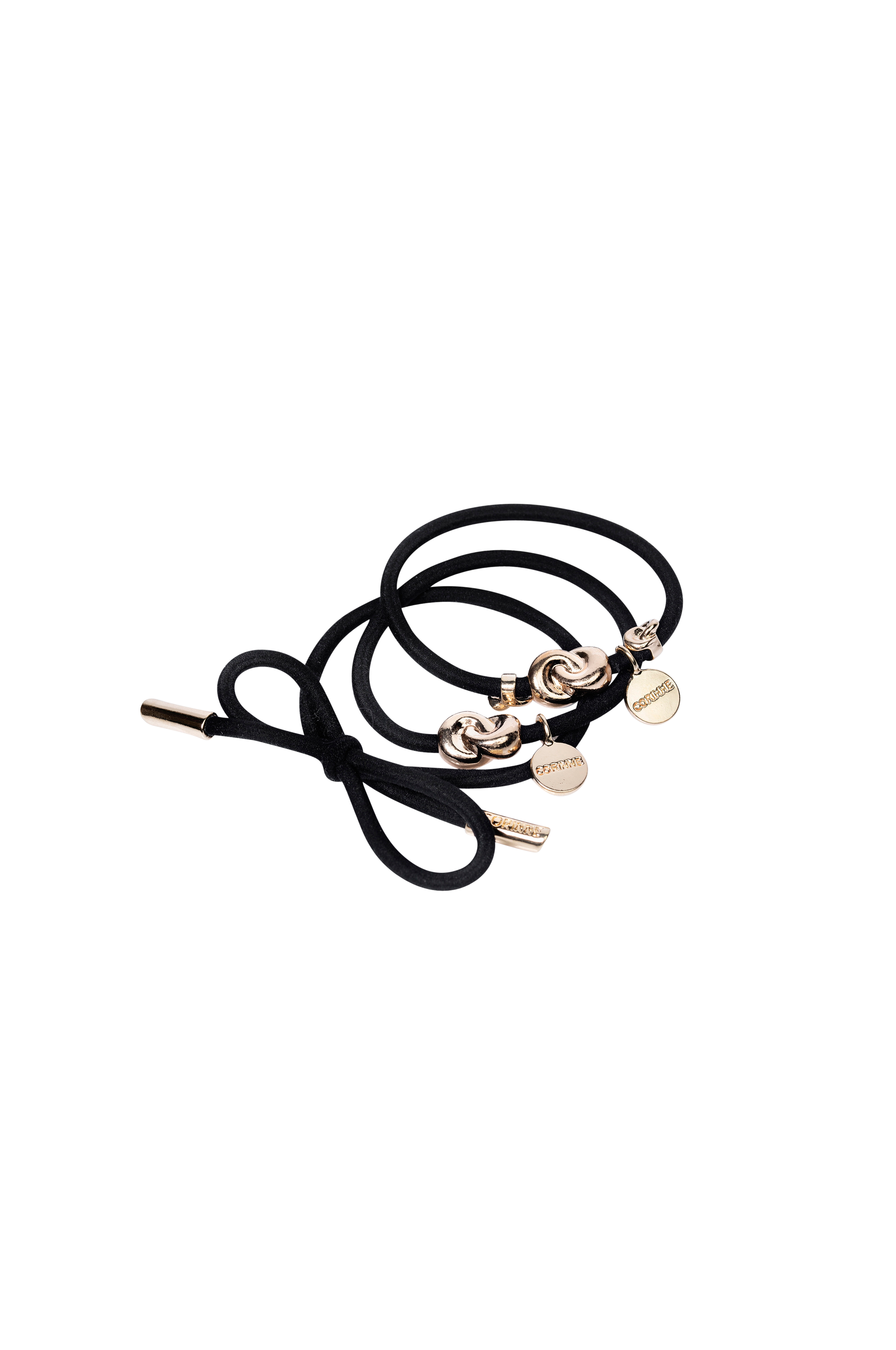 Corinnes klassiska hårsnoddar har en noggrant utvald elasticitet som håller hög kvalitet och är noga arbetad. Förpackning med tre snoddar med klassiska, guldiga metalldetaljer.