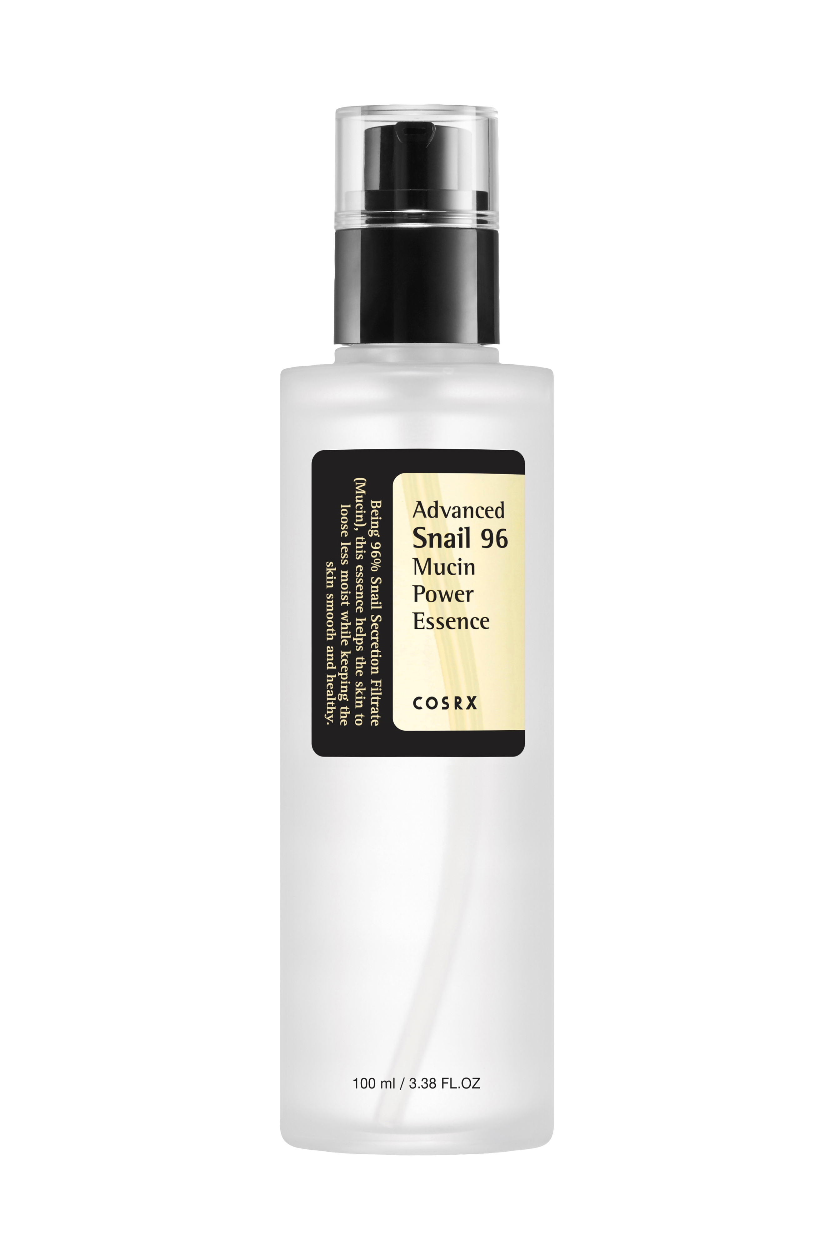Med 96 % snigelsekretfiltrat (mucin) hjälper denna essens till att förebygga fuktförlust i huden, samtidigt som den håller huden smidig och frisk.