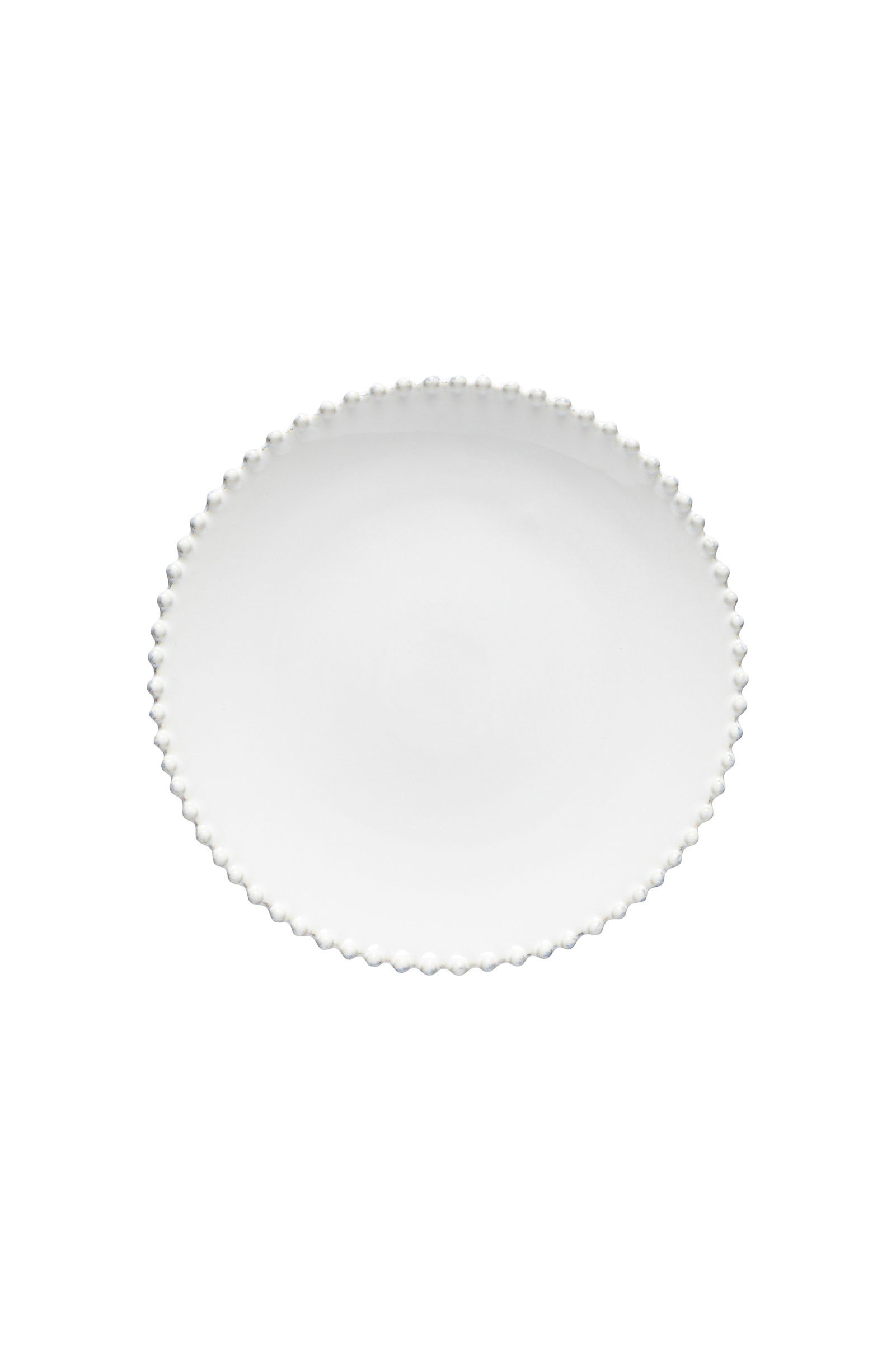 Middagstallriken, tillverkad av fint stengods och tillverkad i Portugal, har en kant dekorerad med pärlor och en handborstad finish som ger den en unik, hantverksmässig touch. Kollektionen pearl finns i vitt med en blank yta och erbjuder ett mångsidigt utbud av delar för bordet, servering, kaffe och te, bad och dekoration. Den innehåller alternativ som tallrikar, skålar, bakelser, centerpieces, fat samt middagsserviser, alla med samma exklusiva detalj. Kollektionen kombinerar tidlös elegans med mångsidighet, vilket gör den perfekt för både speciella tillfällen och vardagsbruk.