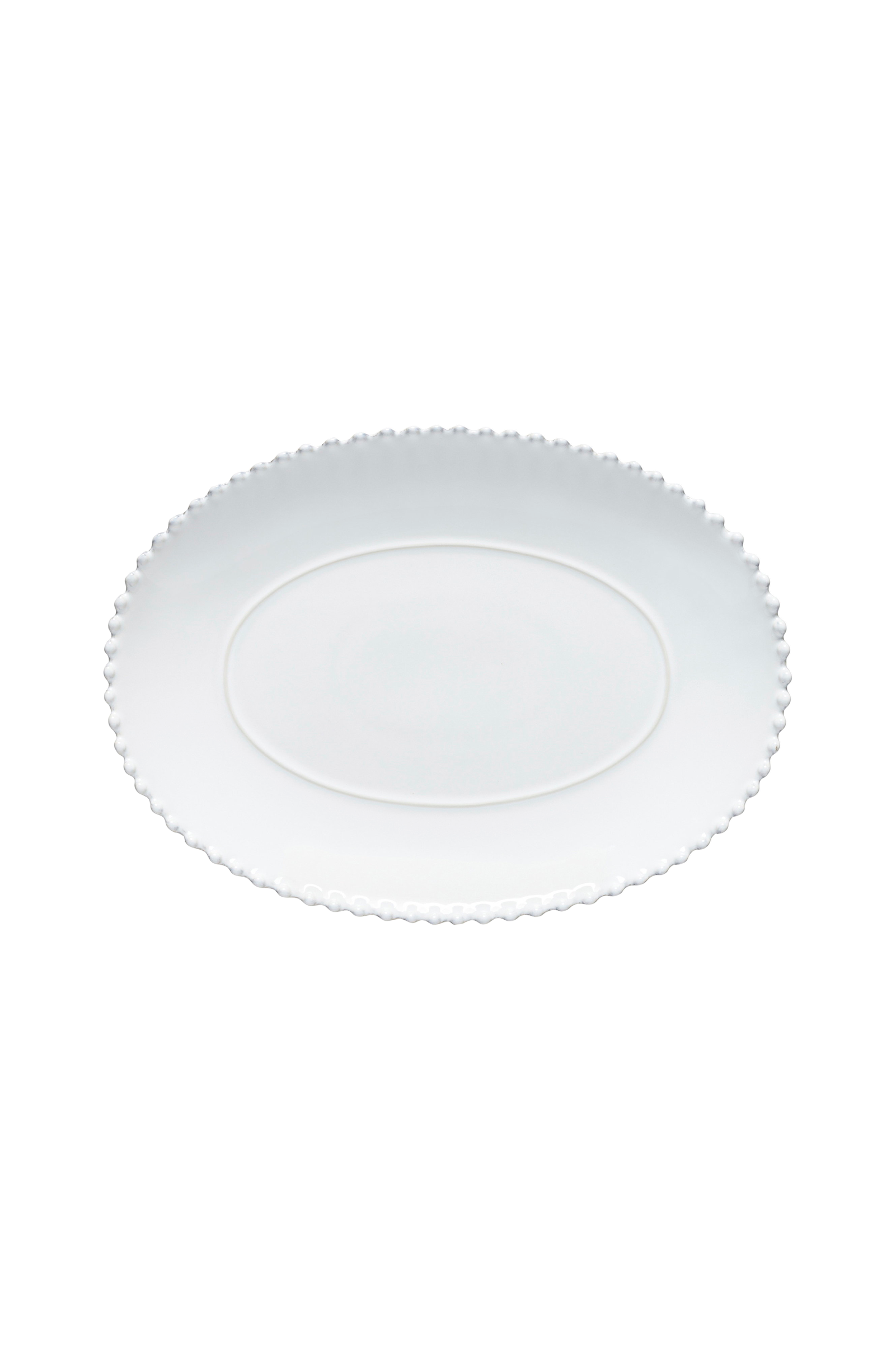 Det lilla ovala fatet, tillverkat av fint stengods och tillverkat i Portugal, har en kant dekorerad med pärlor och en handborstad finish som ger det en unik, hantverksmässig touch. Kollektionen pearl finns i vitt med en blank yta och erbjuder ett mångsidigt utbud av delar för bordet, servering, kaffe och te, bad och dekoration. Den innehåller alternativ som tallrikar, skålar, bakelser, centerpieces, fat samt middagsserviser, alla med samma exklusiva detalj. Kollektionen kombinerar tidlös elegans med mångsidighet, vilket gör den perfekt för både speciella tillfällen och vardagsbruk.