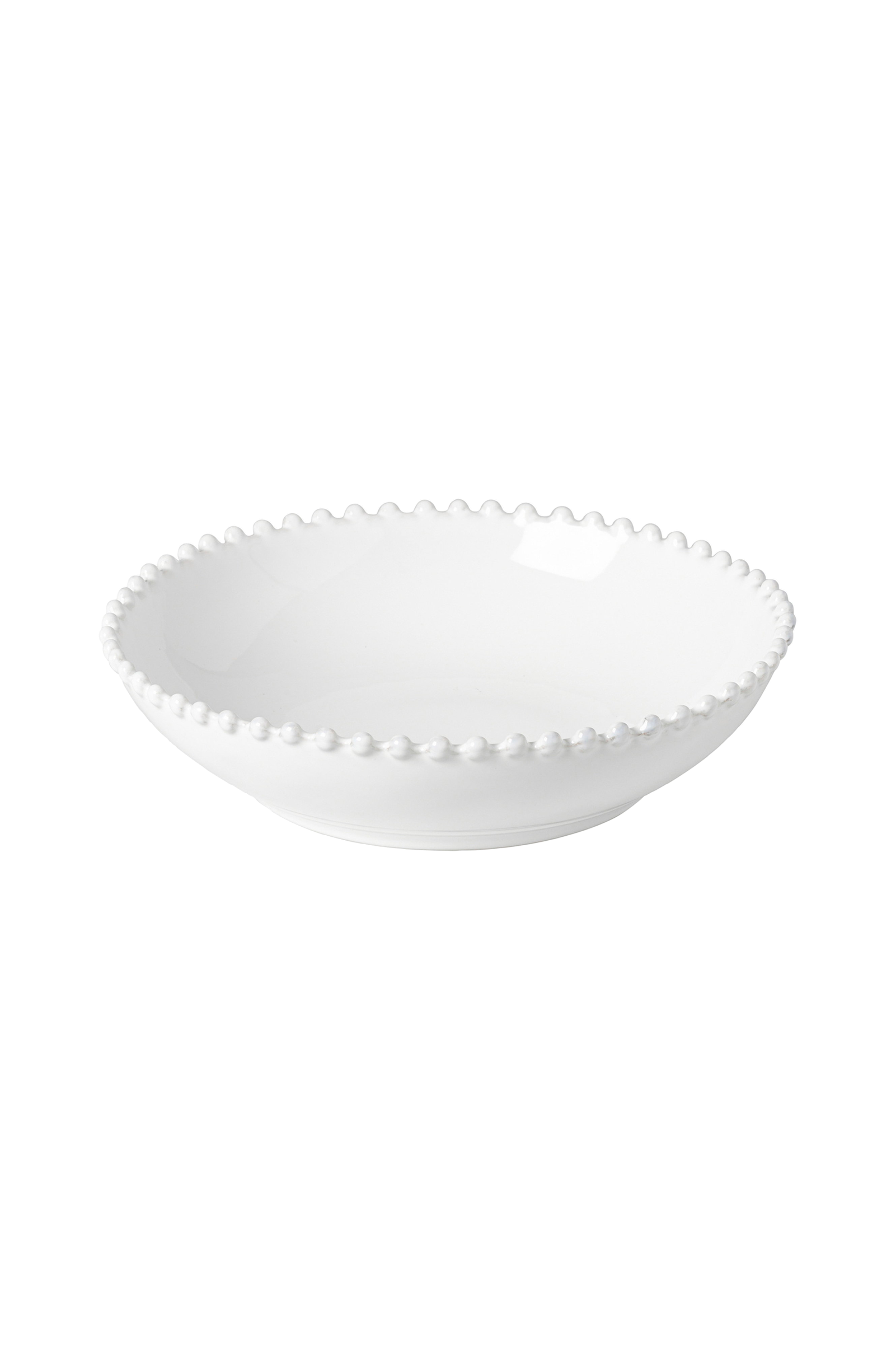 Pastaskålen, som är tillverkad av fint stengods och tillverkad i Portugal, har en kant dekorerad med pärlor och en handborstad finish som ger den en unik, hantverksmässig touch. Kollektionen pearl finns i vitt med en blank yta och erbjuder ett mångsidigt sortiment av produkter för bordet, servering, kaffe och te, badrum och dekoration. Den innehåller alternativ som tallrikar, skålar, bakelser, centerpieces, fat samt middagsserviser, alla med samma exklusiva detalj. Kollektionen kombinerar tidlös elegans med mångsidighet, vilket gör den perfekt för både speciella tillfällen och vardagsbruk.