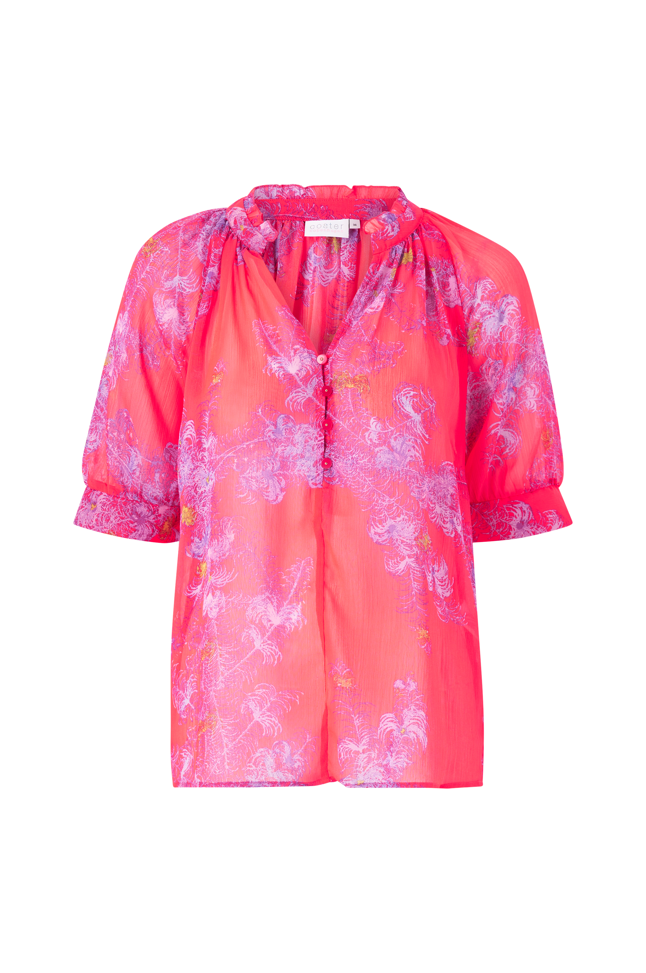 • Transparent blus i chiffong• V-ringning med knappar• Volang i halsen• Korta ärmar• Produkten innehåller återvunnet material som har tagits tillvara för att minska mängden avfall, samtidigt som nya resurser inte har förbrukats.
