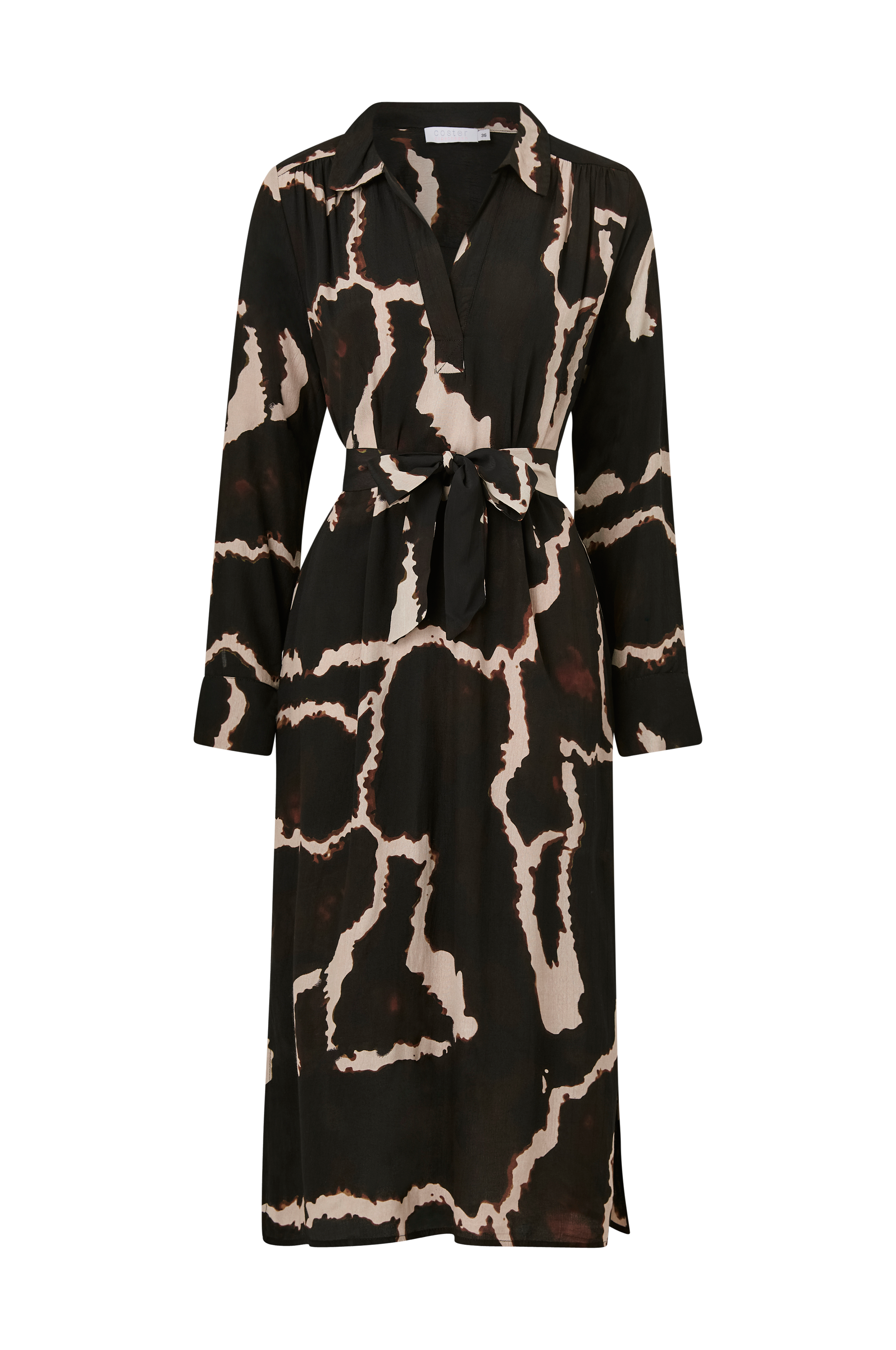 • V-ringning med krage• Långa ärmar med manschett• Knytskärp• Fickor i sidorna• Slitsar i sidorna• Längd: 124 cm i storlek 36