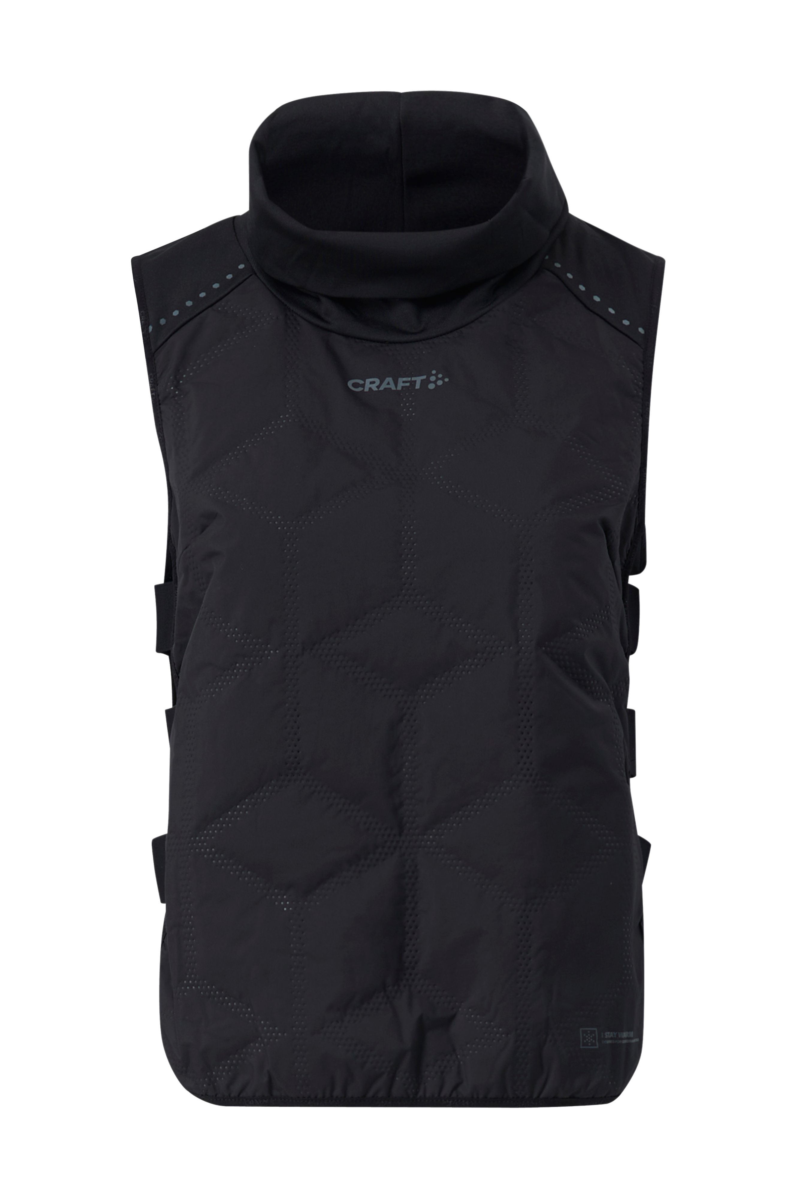 En högfunktionell löparväst för intensiv träning i kyliga vinterförhållanden. Denna avancerade kallvädersväst har ett 3-lagers vindskyddande Ventair-material med tunn vaddering framtill samt borstad, återvunnen trikå i ryggen för effektiv fukttransfer och extra rörelsefrihet. Hög krage, dragkedja och elastiska band i sidan för en tight passform.
