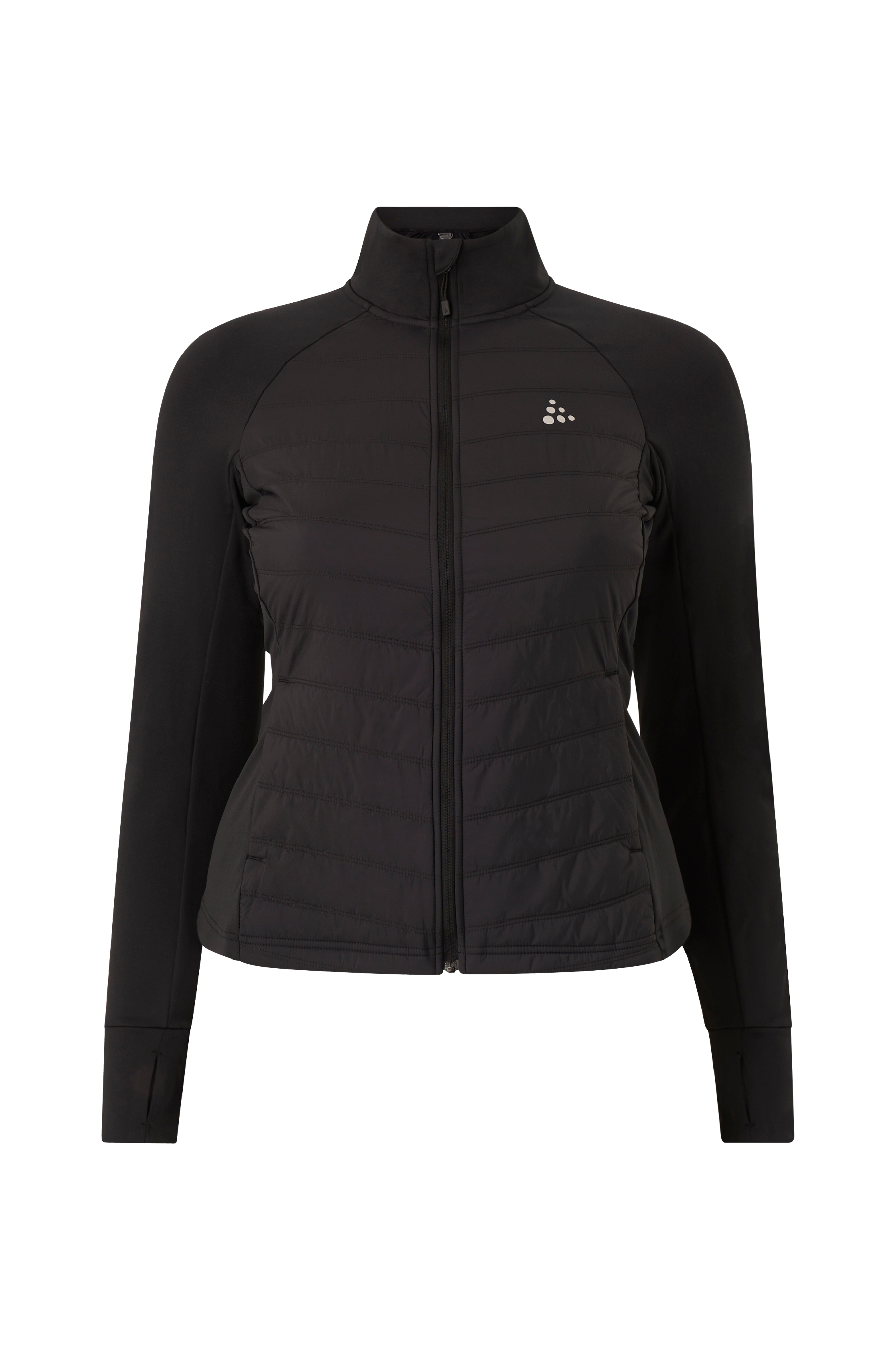 • Stretchigt material • Quiltad vaddering framtill och baktill med vindavvisande yttertyg • Hög krage • Dragkedja • Muddar i ärmsluten med tumhål • Längre baktill • Längd: 70 cm i storlek 42