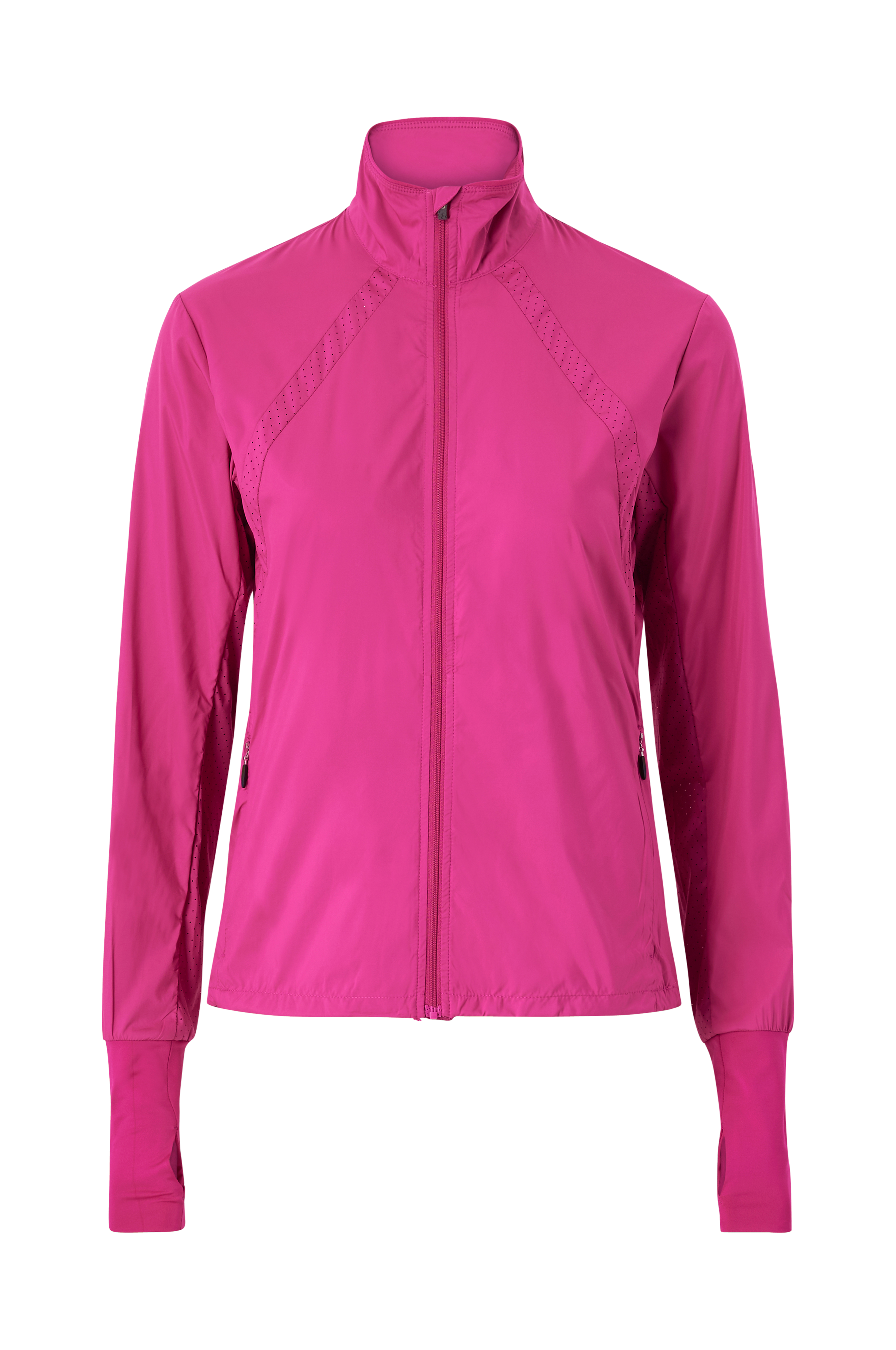 En mångsidig träningsjacka för intensiv träning, löpning och liknande aktiviteter. Jackan är gjord av ett lätt, vind- och vattenavvisande material av återvunnen polyester som ger effektiv fukttransport och har dessutom perforeringar i bröst och armhålor för effektiv ventilation. Hög krage, dragkedja och två dragkedjefickor.