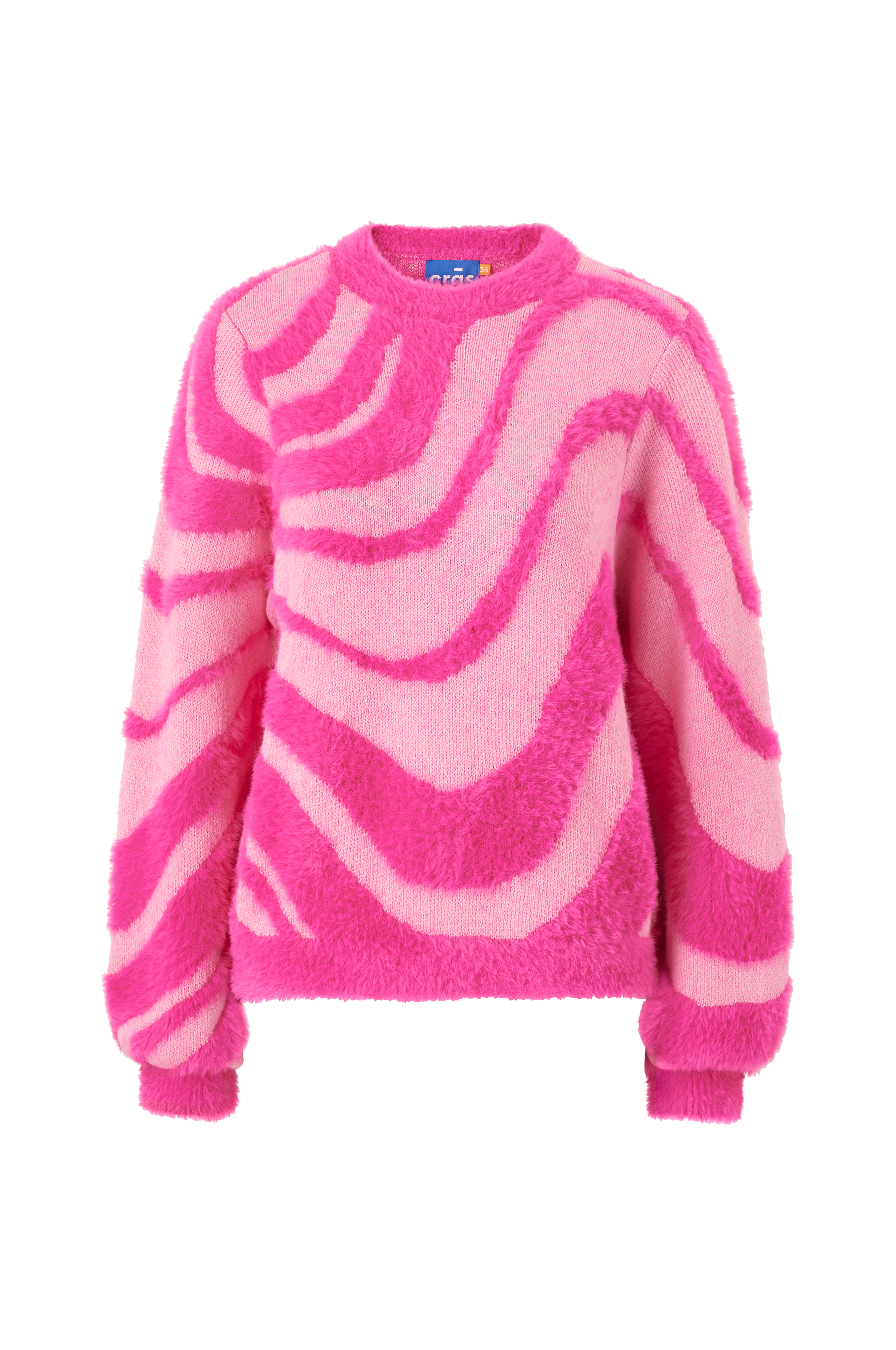 • Stickad tröja i ullmix med hårigt mönster• Lös passform• Ballongärmar