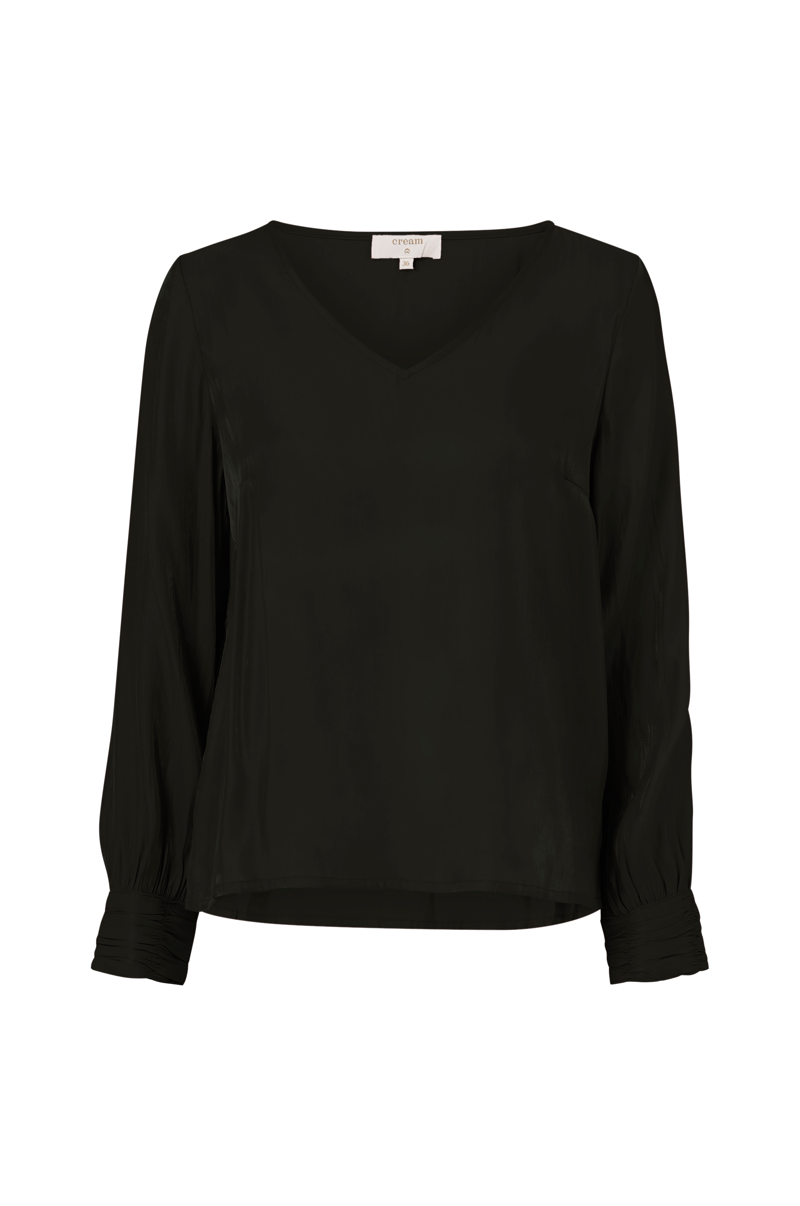 Blus crMagda Blouse från Cream i vävd viskosmix med fint skimmer. V-ringning fram och långa ärmar med bred, veckad manschett med klädda knappar.